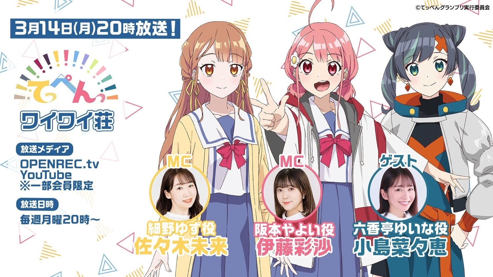 - 「OPENREC.tv」にて生放送レギュラー番組「てっぺんっ!!!!!!!!!!!!!!!ワイワイ荘」放送中!