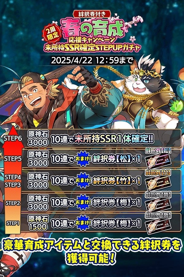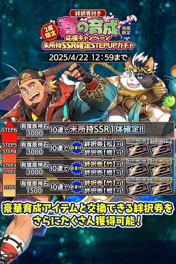 ・『絆択券付き 春の育成応援キャンペーン 未所持SSR確定STEPUPガチャ』