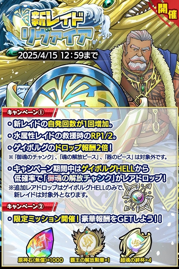 【開催期間】4月7日(月)メンテナンス終了後~4月15日(火)12:59まで