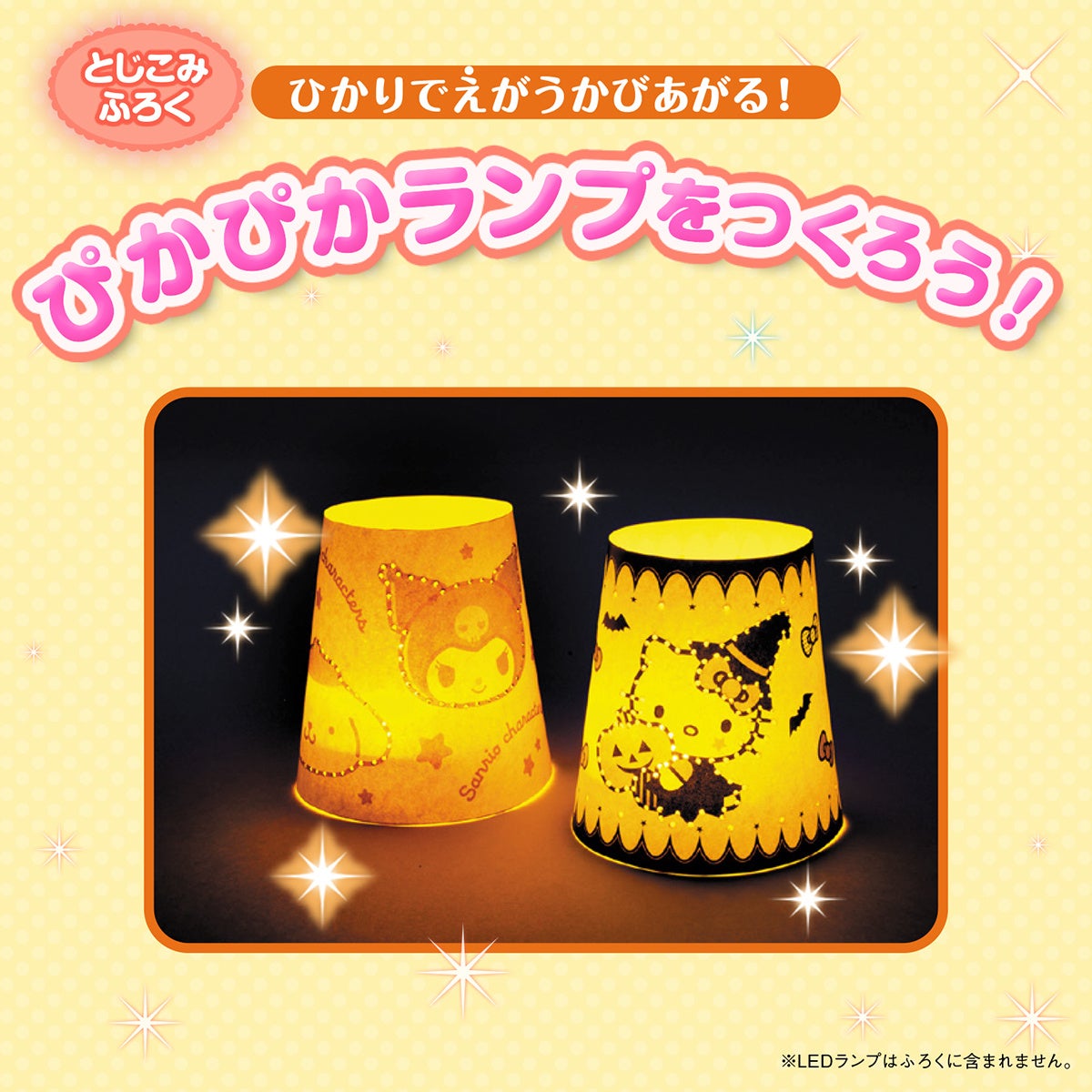イラストに沿って穴をあけるだけで、キティたちのイラストが光って浮かび上がるランプが作れます。ハロウィーンの飾りにも♪
