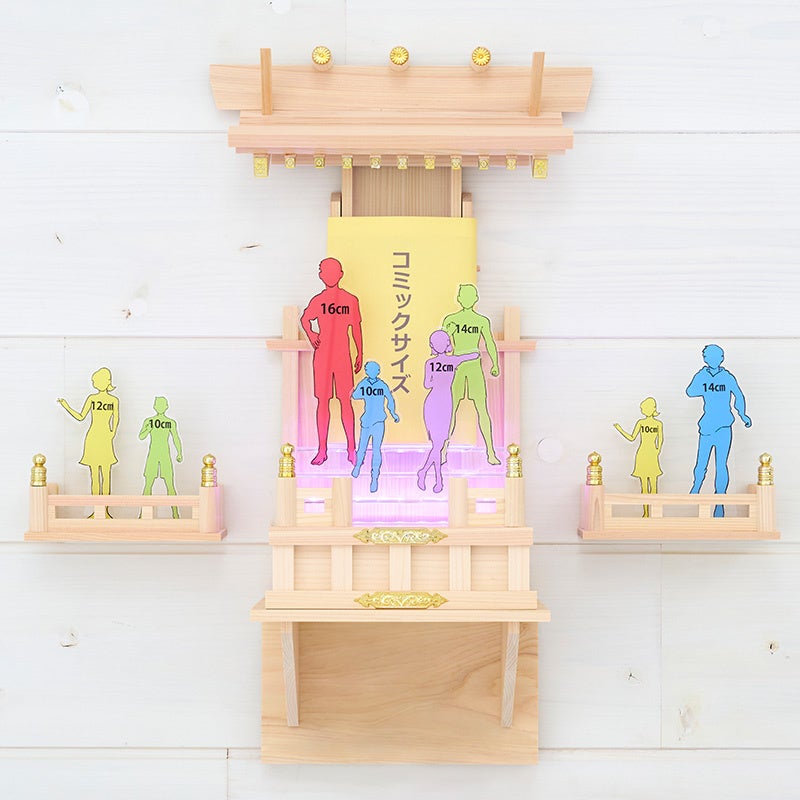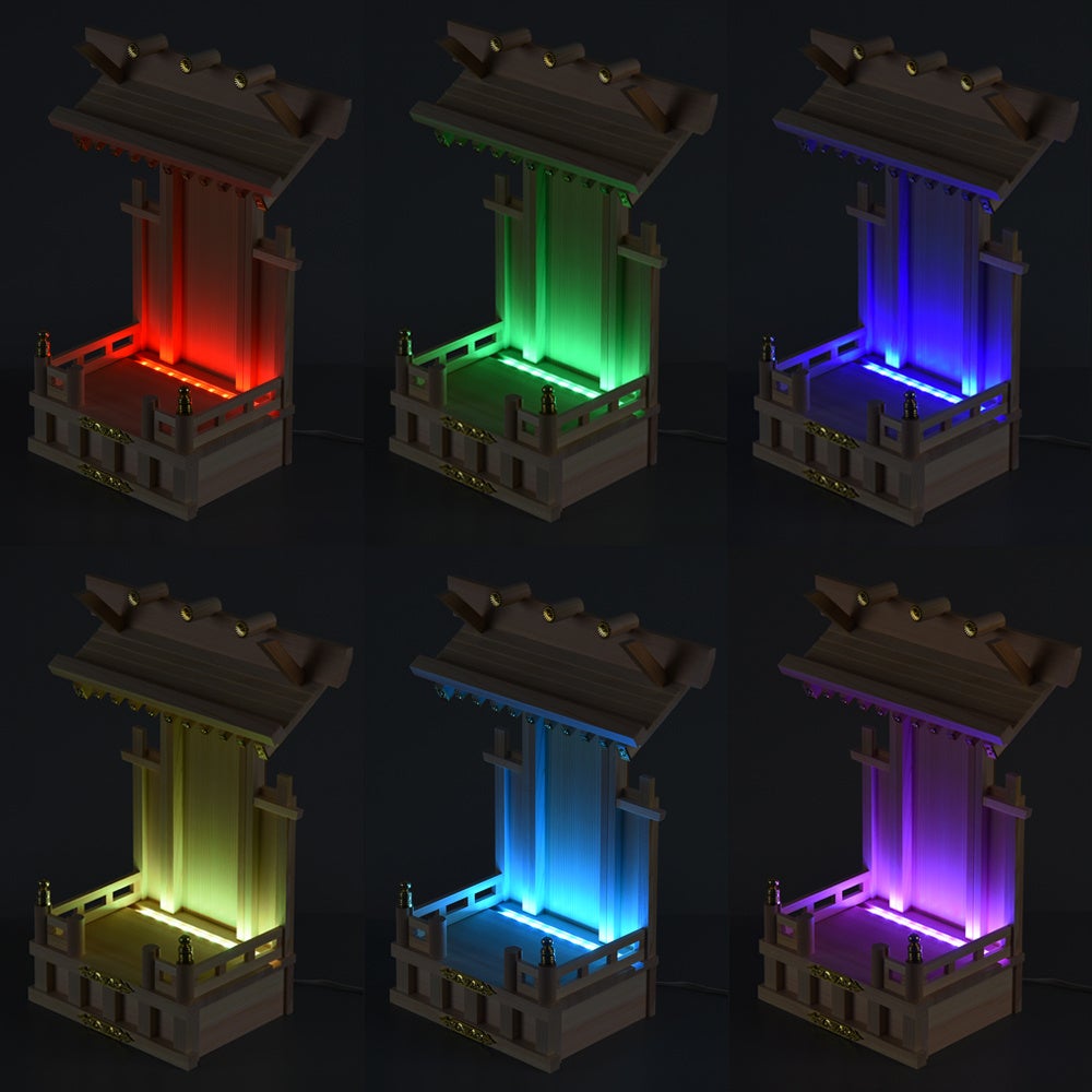 国産ヒノキ材を用い、日本国内で作られた本物の神棚や祭壇さながらの仕様で、お飾りするものに合わせて、高さ調節ができる屋根と20色21パターンで点灯するLEDライトの組み合わせにより、祭壇を自分好みにカスタマイズできるので愛着が湧きます。