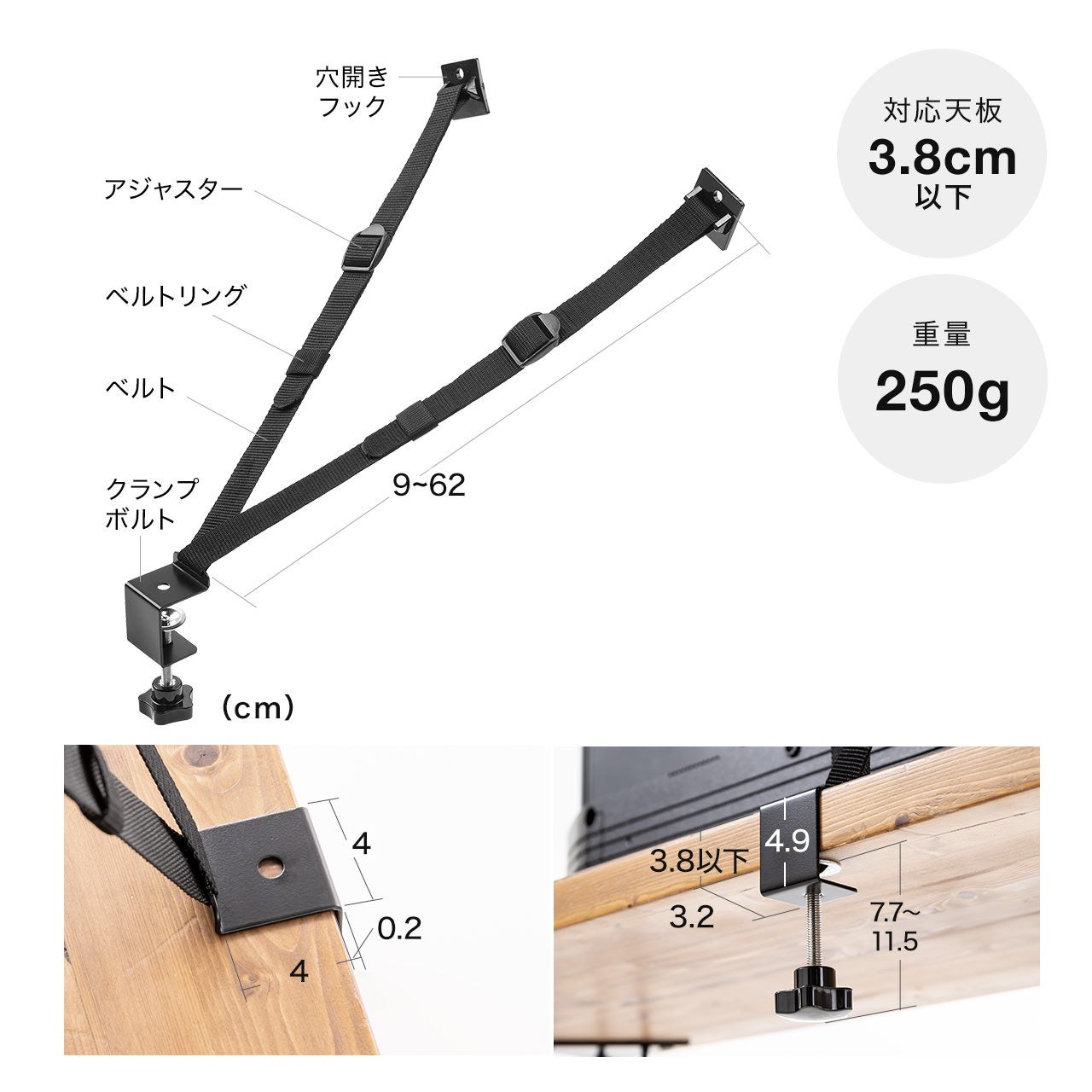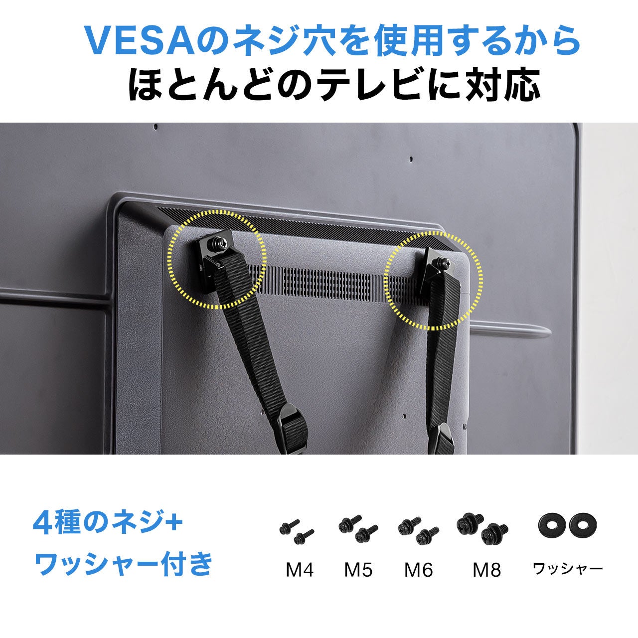 テレビ転倒防止ベルト VESA取付 クランプ固定 穴あけ不要 壁固定対応 震度6強 耐震試験済み