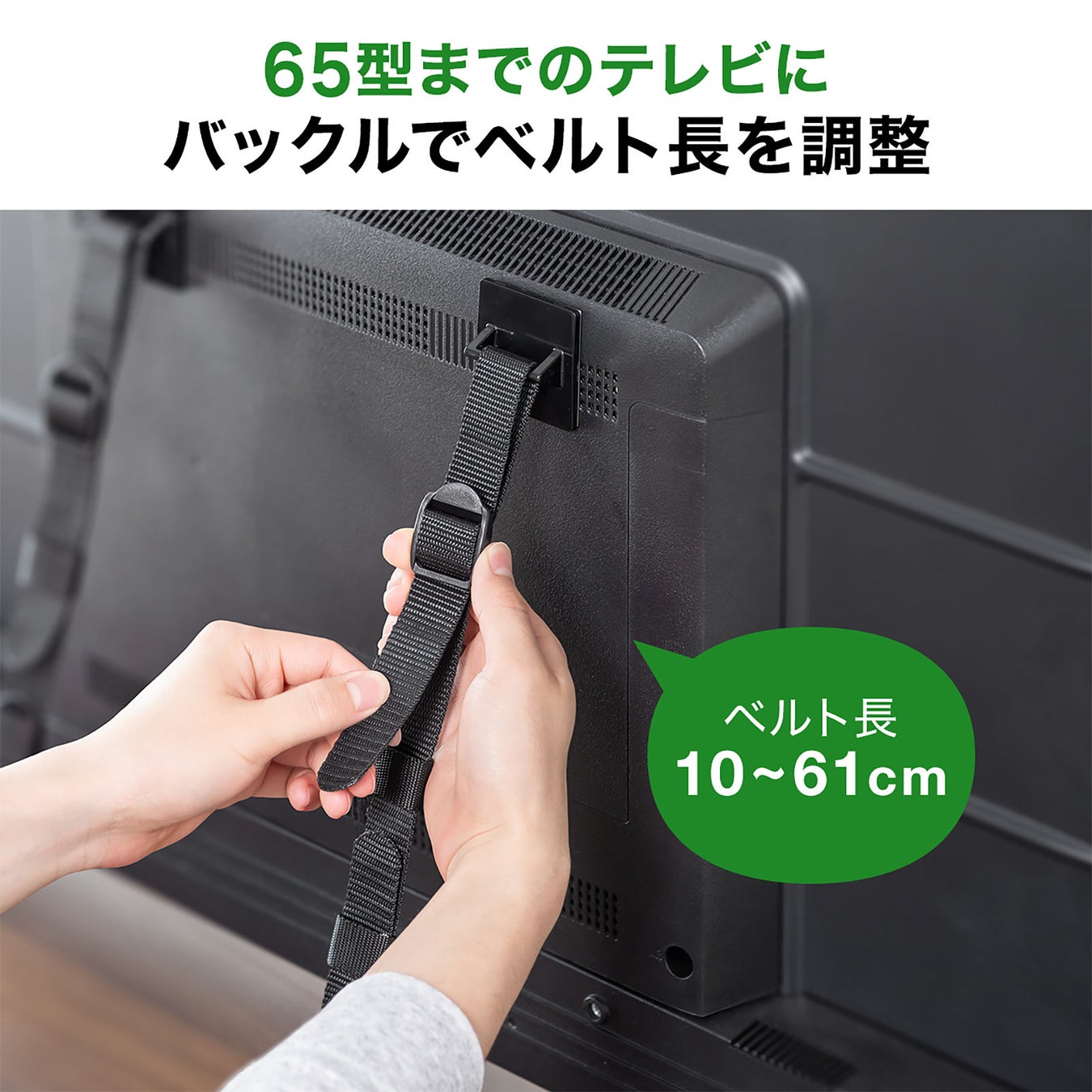 テレビ転倒防止ベルト ベルト2本 両面テープ取り付けタイプ 壁固定 65型まで 震度6強対応