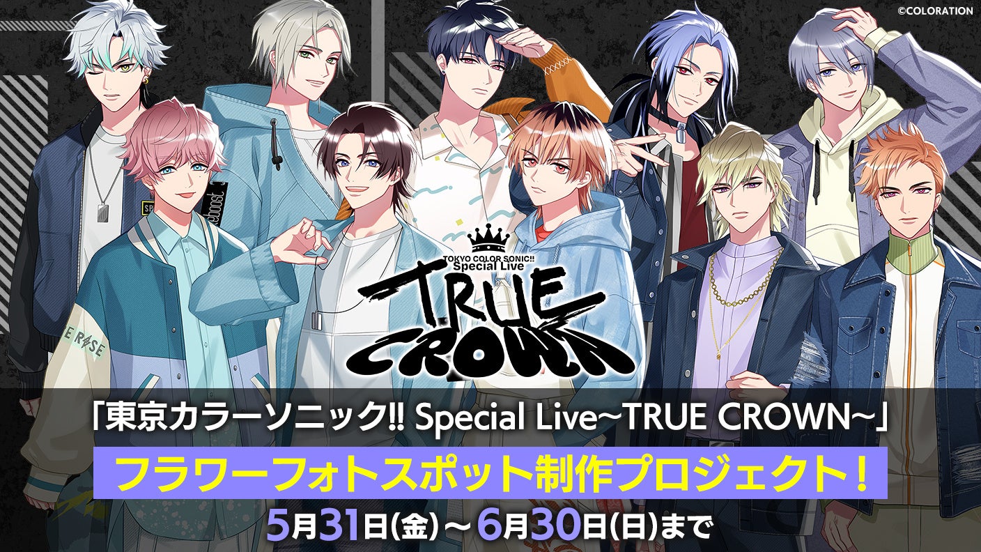 この度、2024年8月11日に開催される『東京カラーソニック!!』のイベント第3弾「東京カラーソニック!! Special Live~TRUE CROWN~」のイベント会場を彩る、フラワーフォトスポット制作を目標としたクラウドファンディングが、アニメイトのWebサービス「ソレオス」にて開催されることが決定しました。