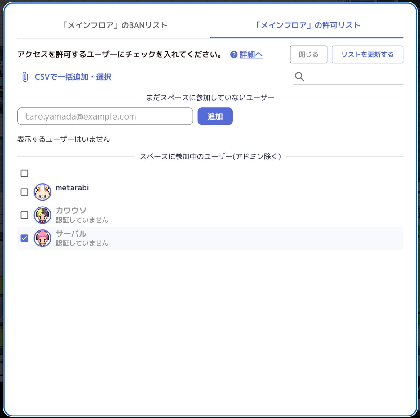 今回のアップデートでは、メールアドレスを入力することでスペースに入室する前のユーザーに対してフロアごとのアクセス制限を設定することができるようになりました。