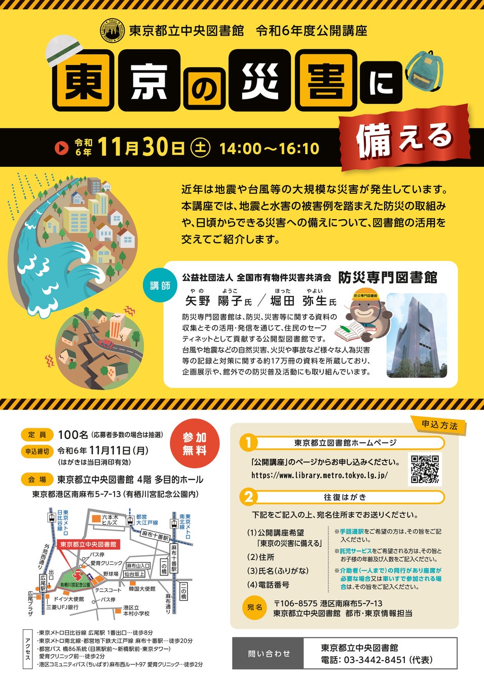 東京都立中央図書館 令和6年度公開講座「東京の災害に備える」