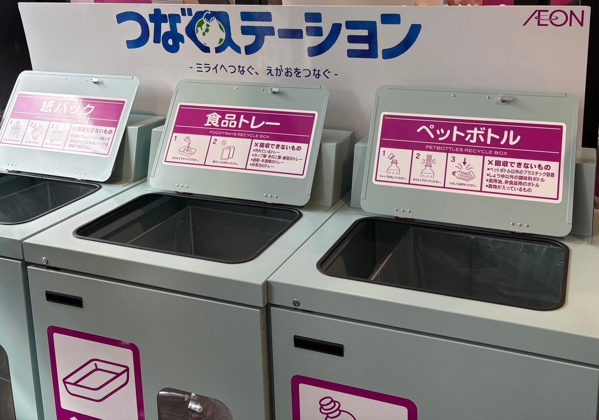 ペットボトルを再び資源化する「ボトル toボトル」や食品トレー、牛乳パックなどの資源ごみを回収し、再資源化、「トップバリュ」の容器の原料の一部に使用し再商品化するなどの取り組みも行っています。