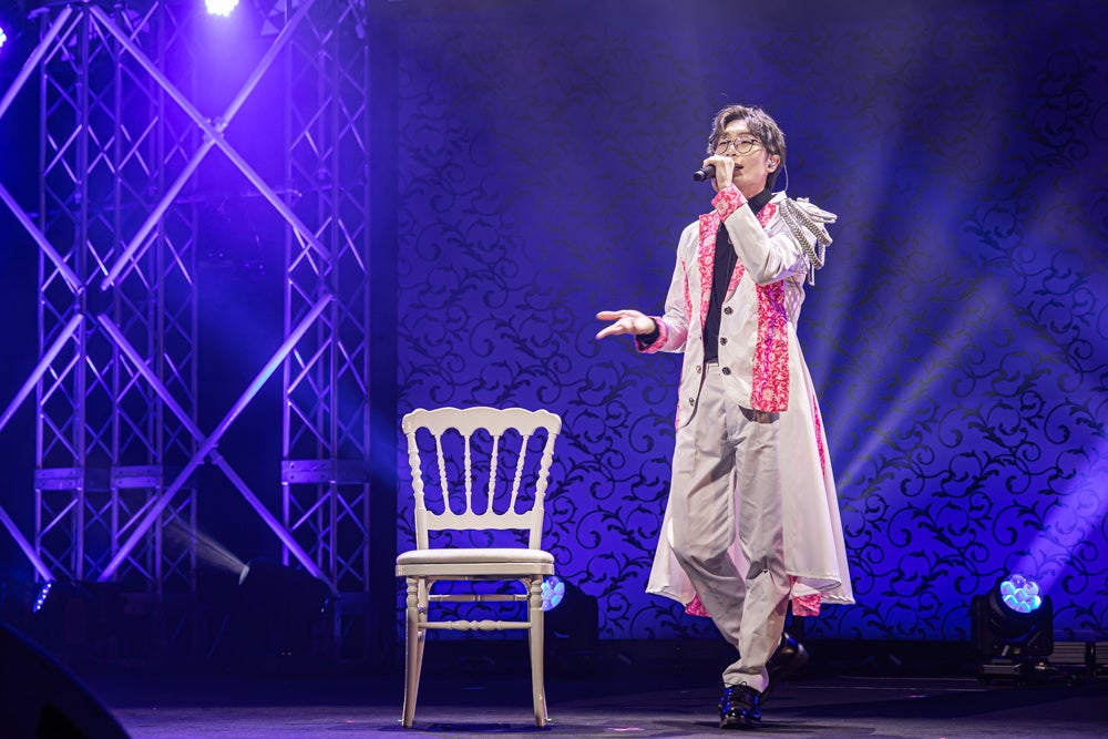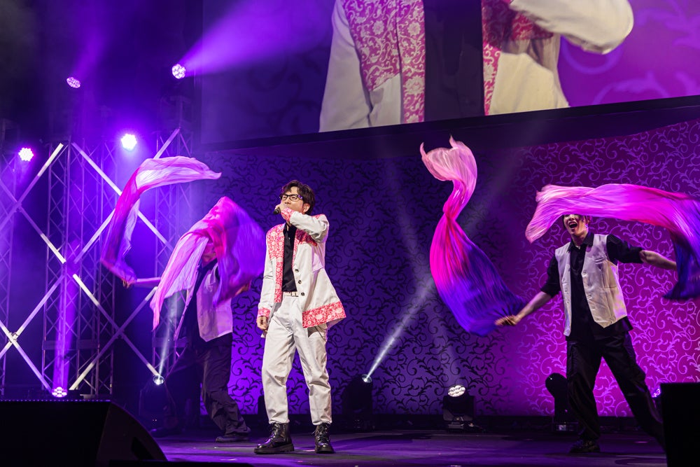 ピンクのサインライトを持って登場した河本さんは、ダンサーと一緒に名積ルカの「ダイジョーブ」をのびのびと歌唱。雅な音が会場に響き渡ると、増元さんが大黒 岳の「花の誇り」を歌い上げ、力強い和のステージを展開。バラエティ豊かなソロ曲パートで客席の歓声が大きく沸き立ちます。
