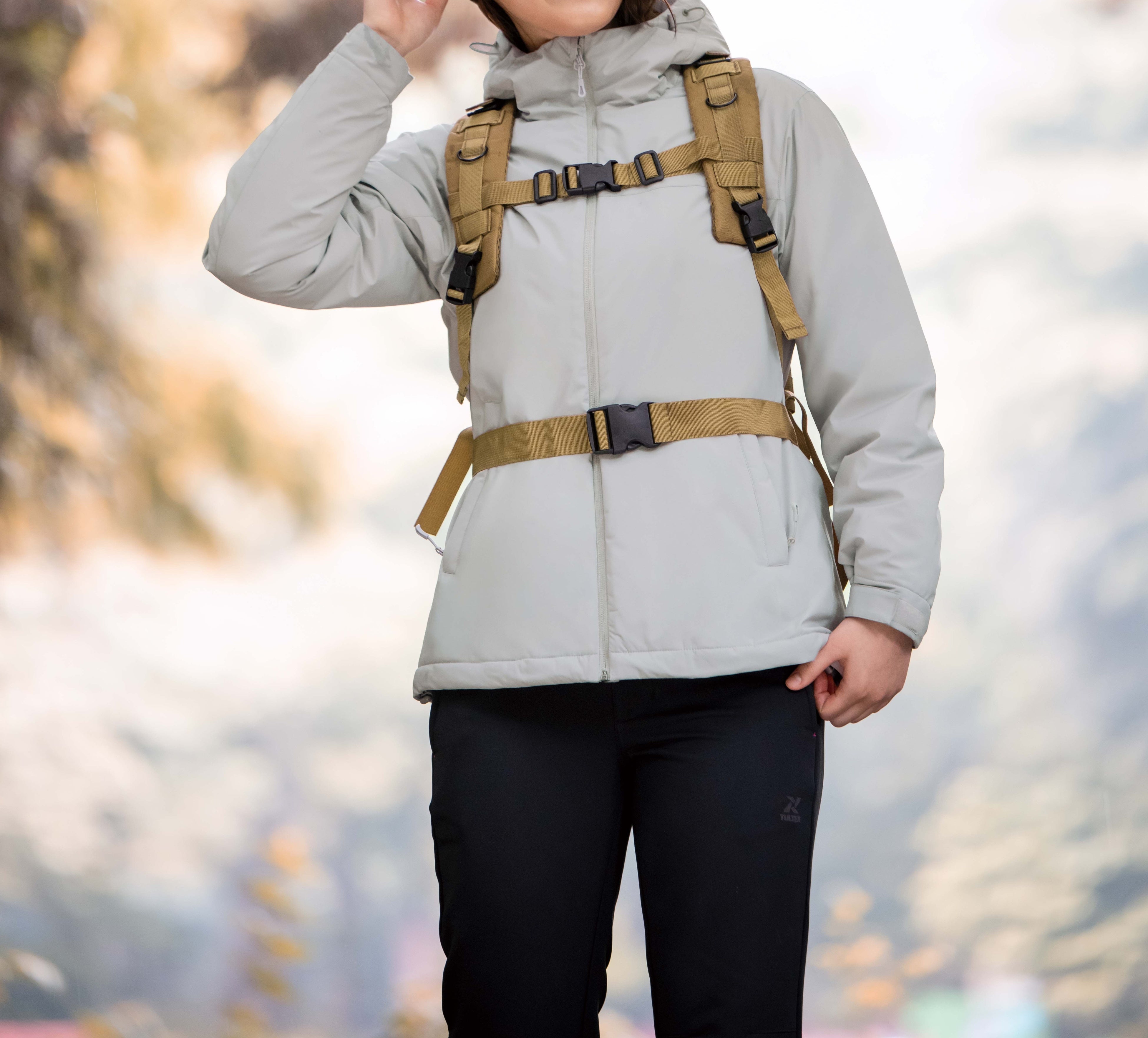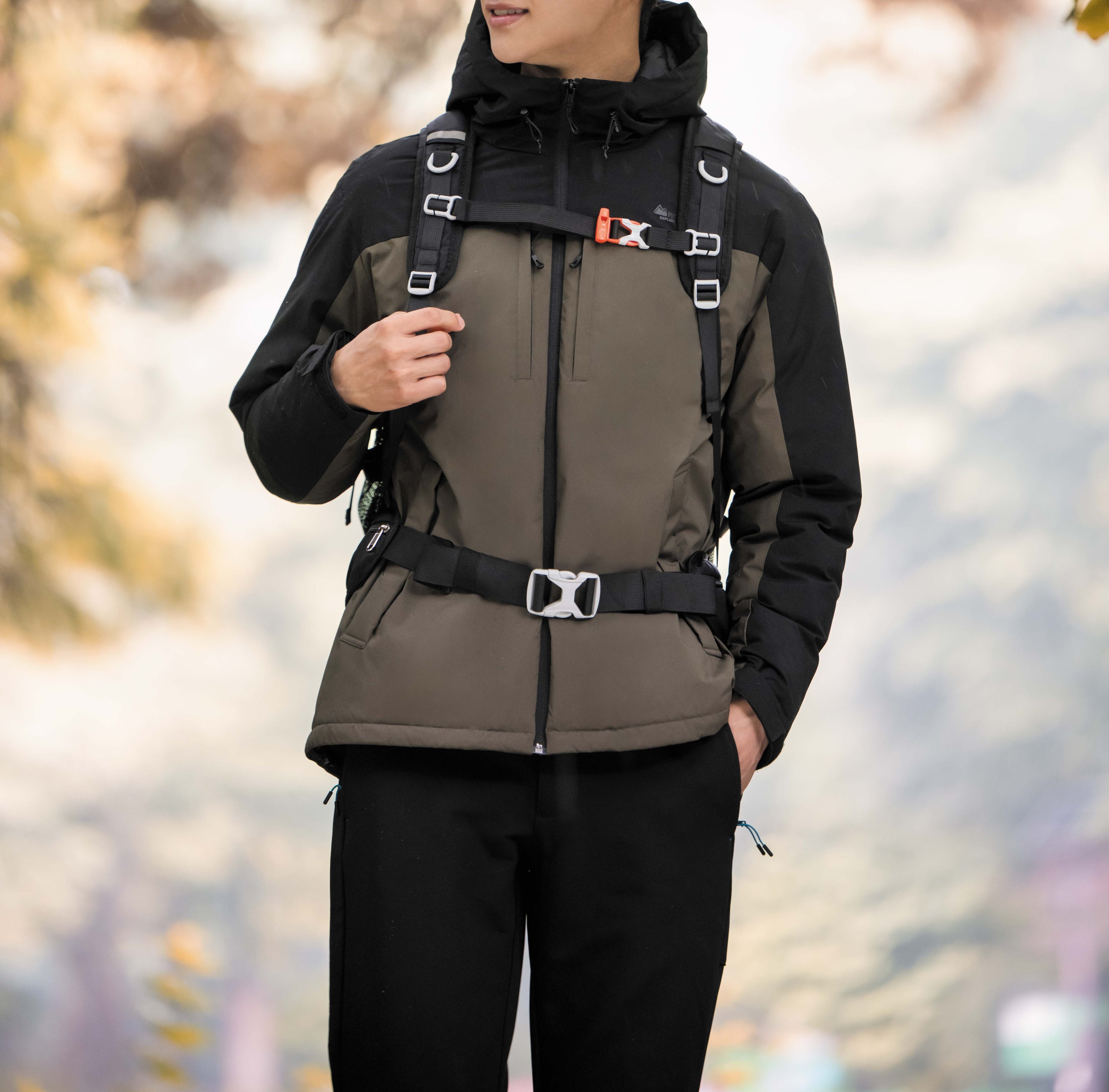 新商品の中綿に練り込んでいる「エアロゲル」は、宇宙服にも採用されている素材で、繊維内部の微細な穴が熱の移動を妨げ、優れた断熱性能を発揮します。高断熱素材の「エアロゲル」によって、熱損失を最小限に抑えて人体の熱を衣服内に閉じ込める保温性の高いスポージアム限定の防寒アウターです。表地には、突然の雨でも安心な耐水圧10,000mmの防水加工と防風加工を施した裂けにくいリップストップ生地を採用しています。アウトドアシーンだけではなく、まちなかでも着用できるカジュアルなデザインです。