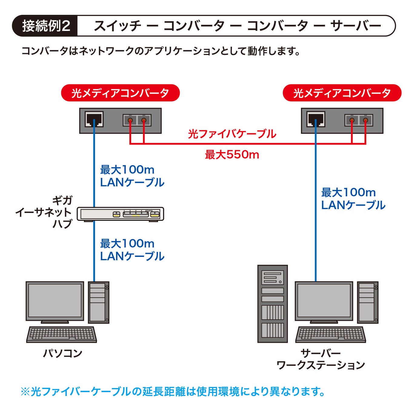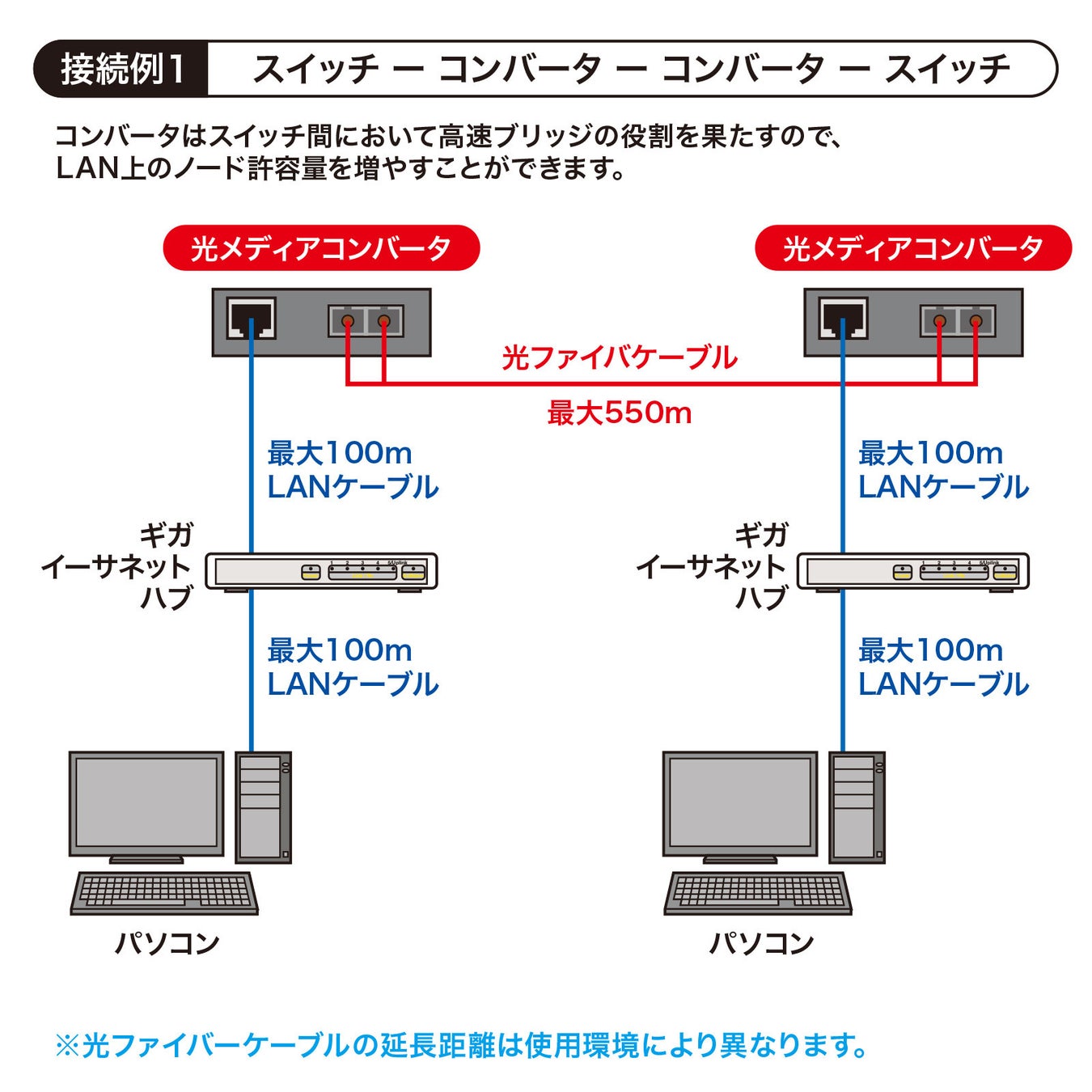 ノイズの影響を全く受けることなく、ネットワーク間をギガビットで最大550mまで延長することができます。