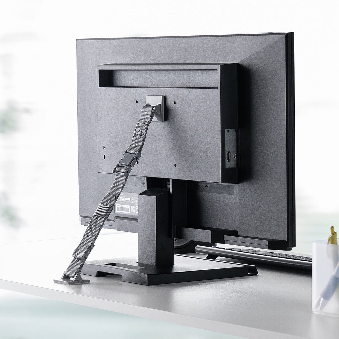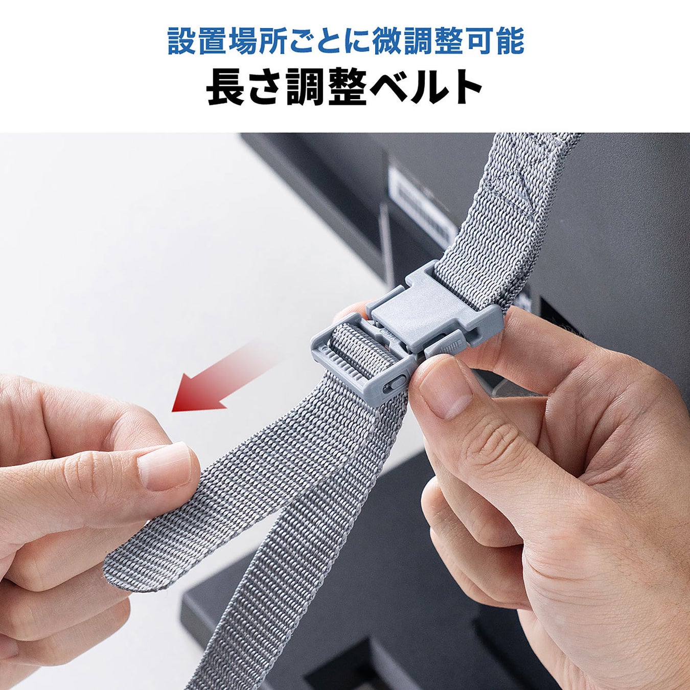 パソコンディスプレイ転倒防止ベルト モニター落下防止 モニターストッパー ワンタッチ着脱 長さ調節可能 震度6強 耐震試験済み