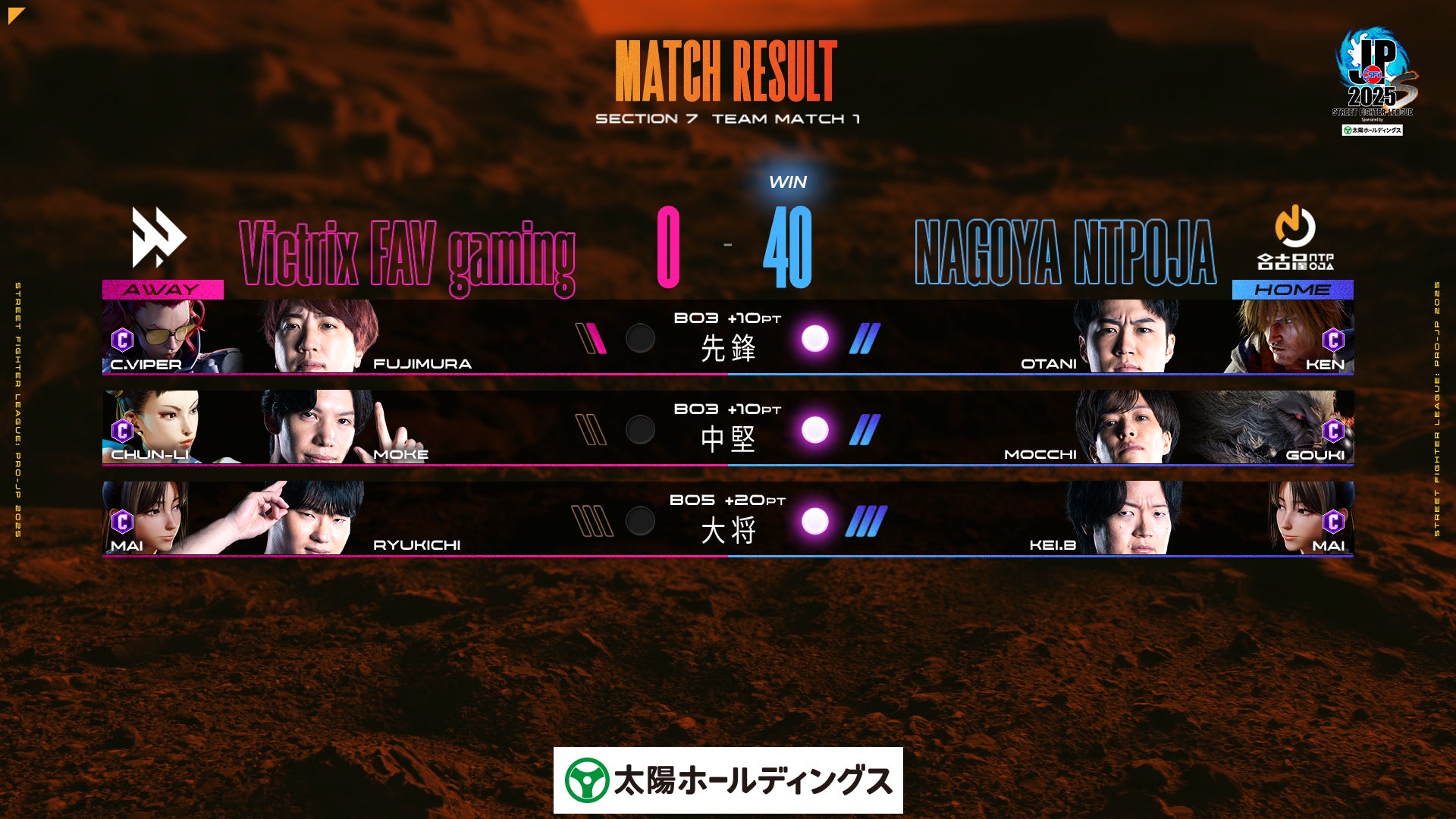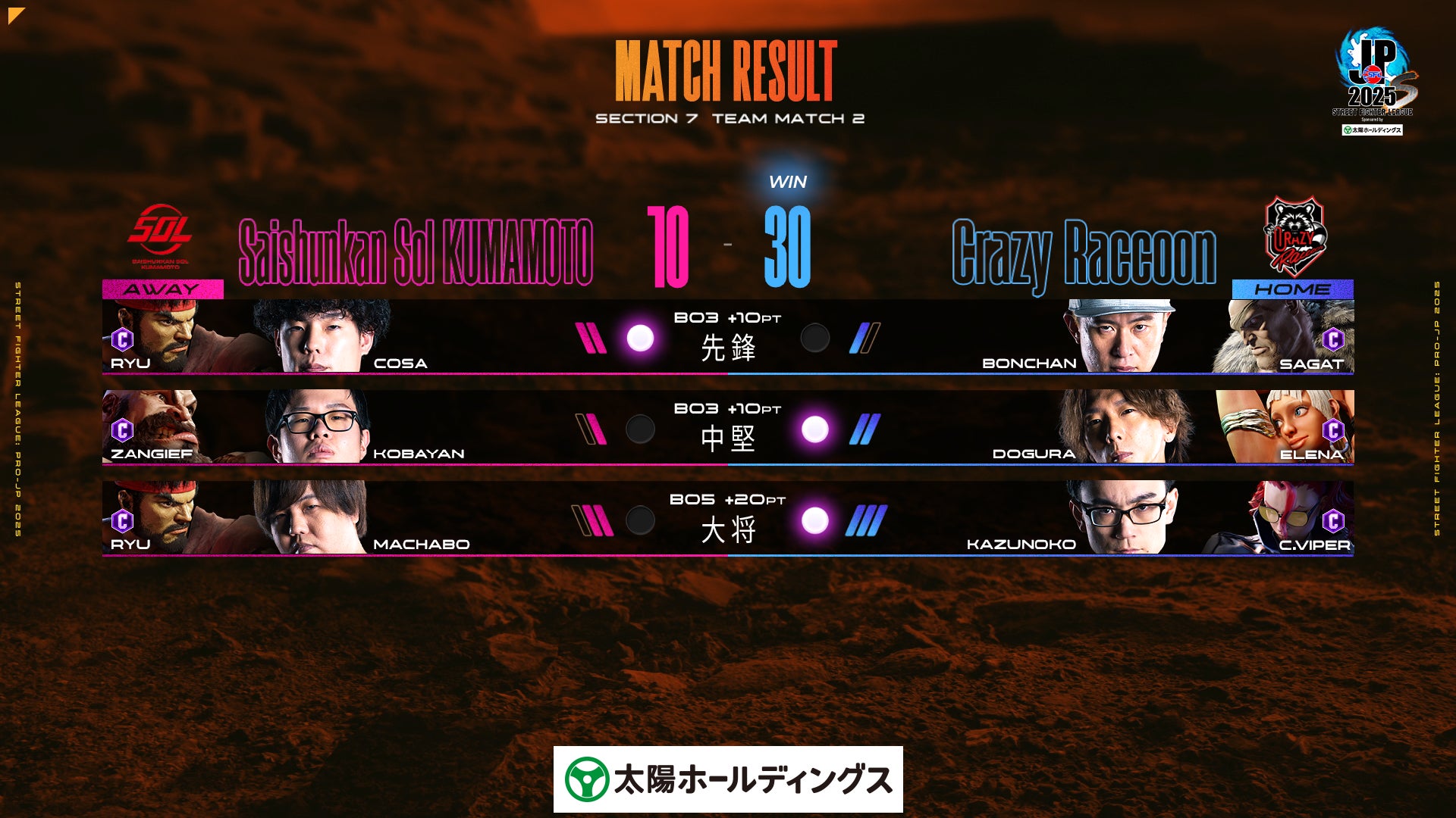 10月28日(火)に行われた「ストリートファイターリーグ: Pro-JP 2025 Division S 第7節」の試合速報をお知らせいたします。
