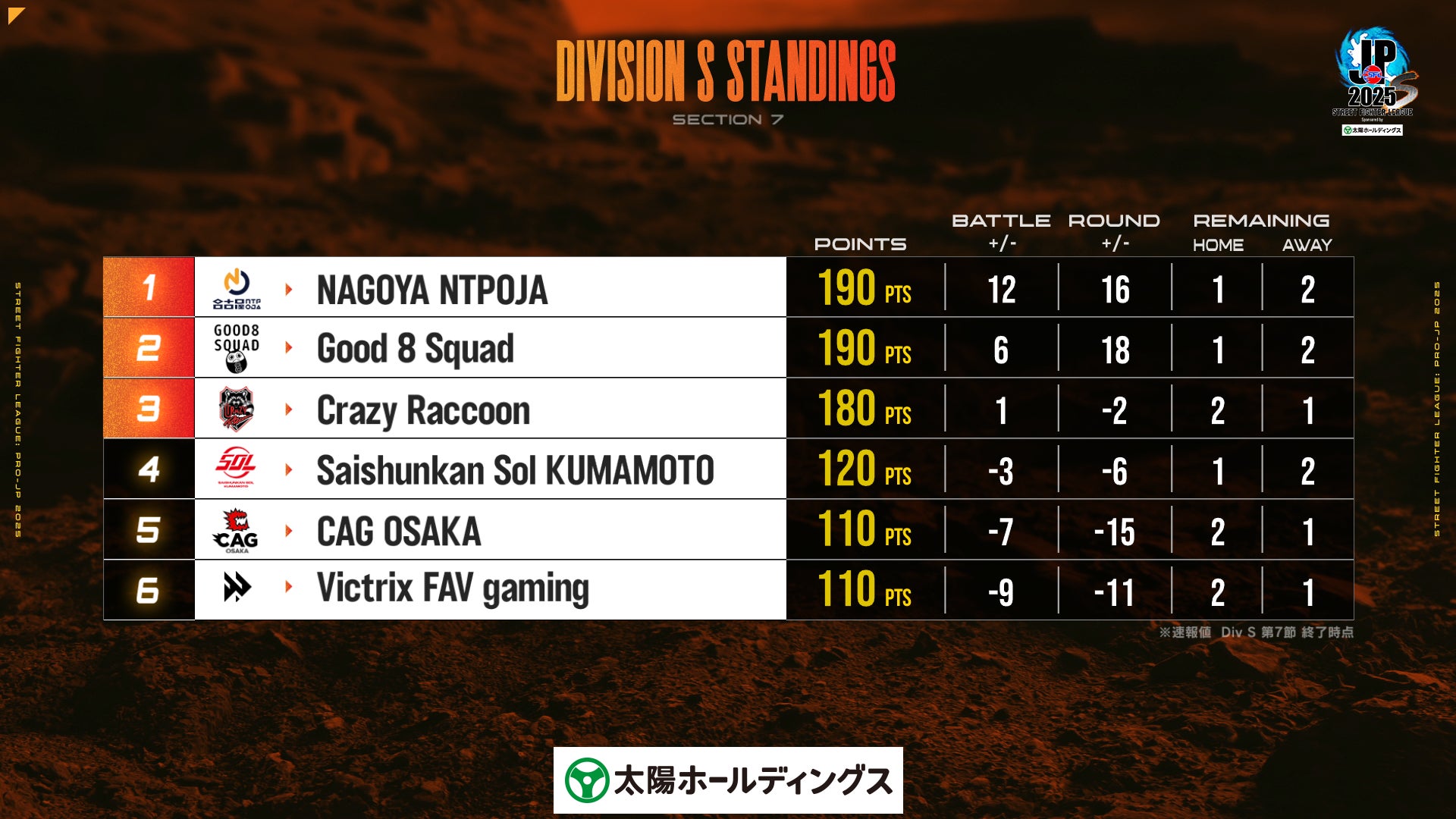 Division S 順位表 ※第7節終了時点