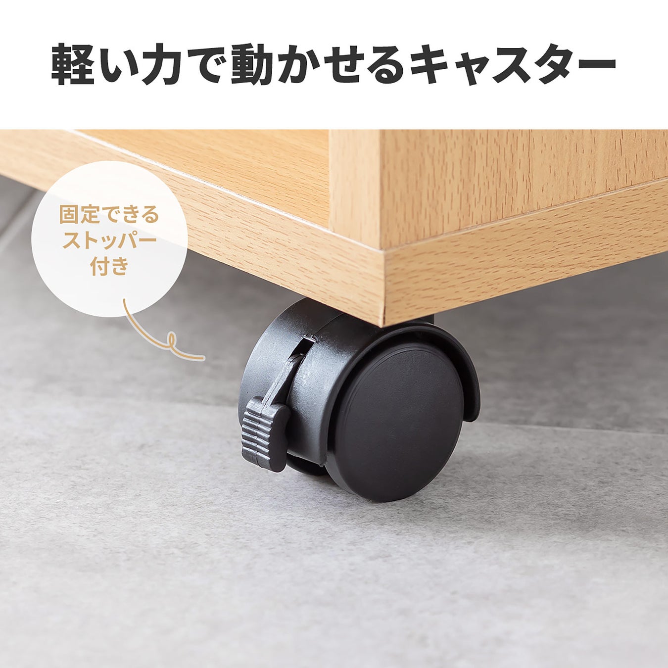 使いたいときにスッと引き出し、不要なときはスムーズに戻せるキャスター付き。掃除や模様替えのときにもストレスなし。柔軟な使い方ができるので、シーンを選ばず活躍してくれます。