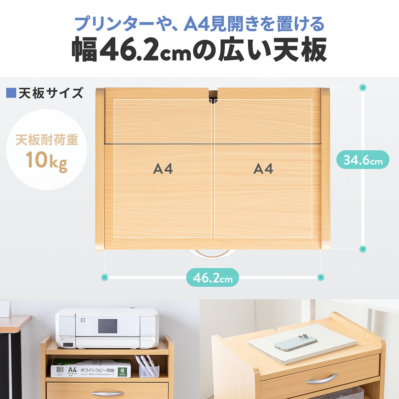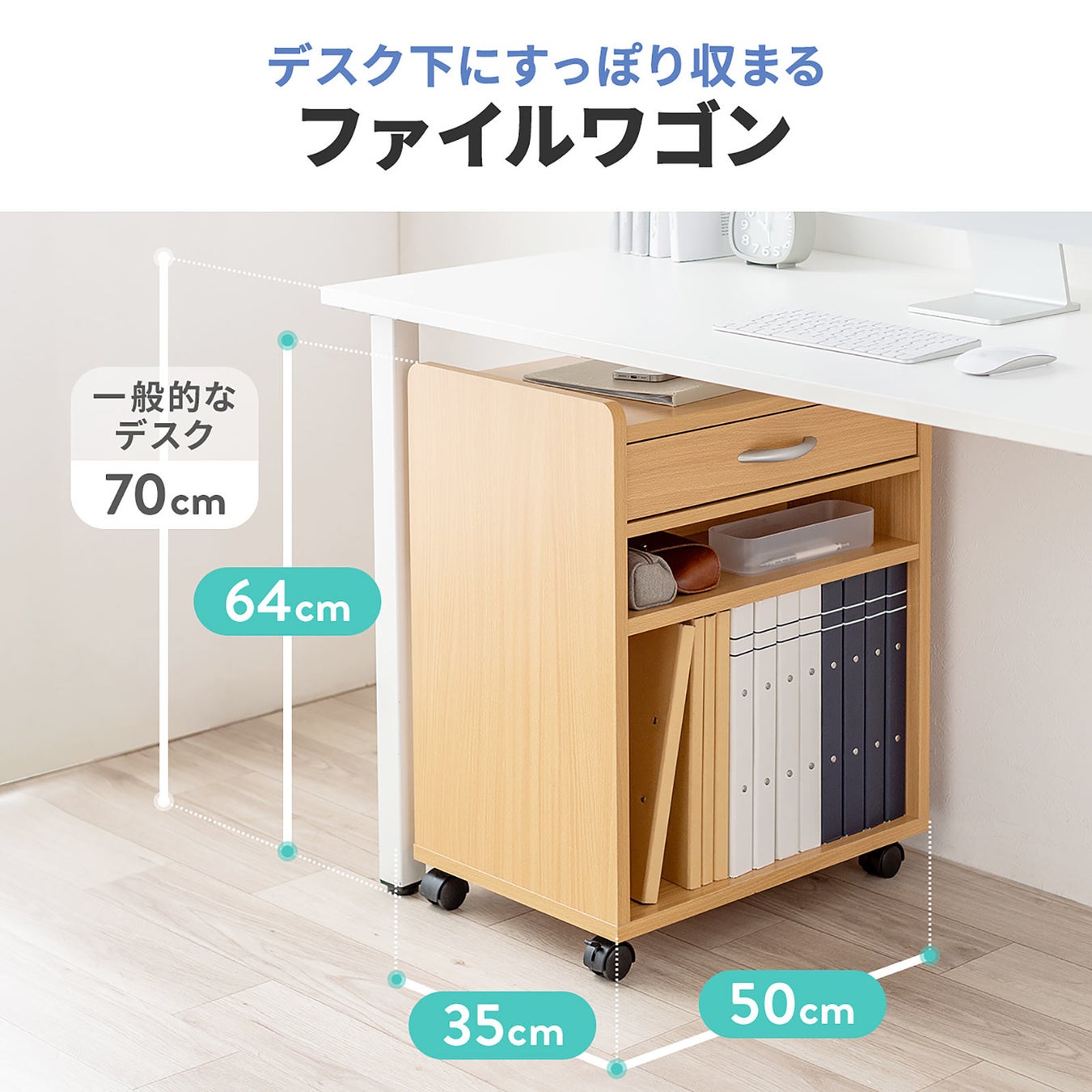 ファイルワゴン 引き出し デスクワゴン 木製 キャスター付き サイドデスク プリンタ台 プリンタワゴン A4ファイル 幅50×奥行き35×高さ64cm