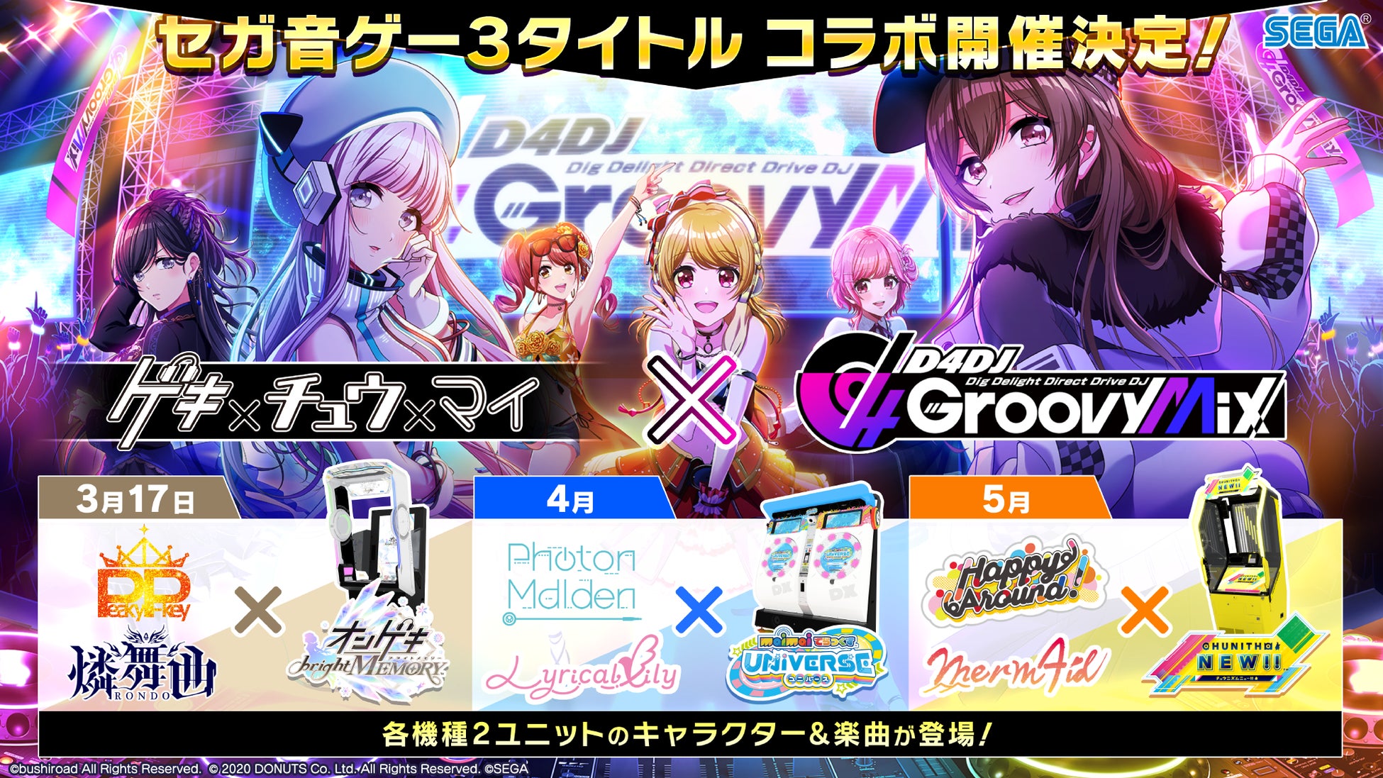 スマートフォン向けリズムゲーム「D4DJ Groovy Mix」とアーケード音楽ゲーム「ゲキチュウマイ」とのコラボ開催決定!!