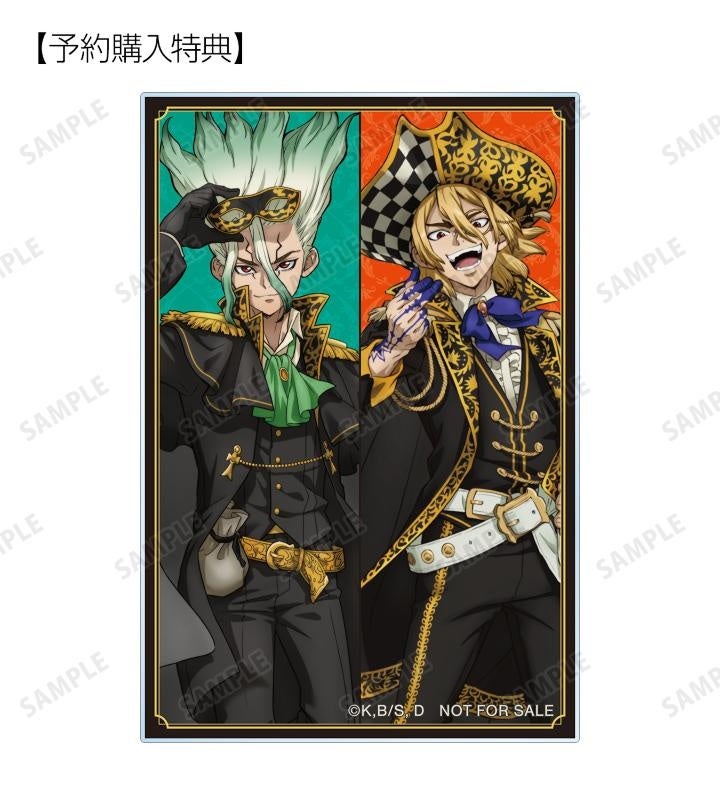 当商品を1BOX、または単品にて1BOX相当数ご注文ごとに、予約購入特典として「描き下ろしイラスト 石神千空&七海龍水 怪盗団ver. アクリルカード AMNIBUS限定特典」を付属いたします。