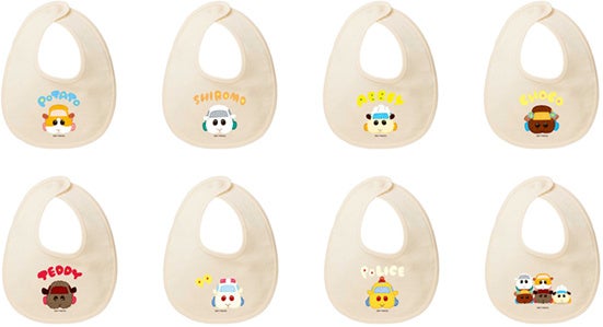 ロンパースは3色展開、よだれかけは全8種。