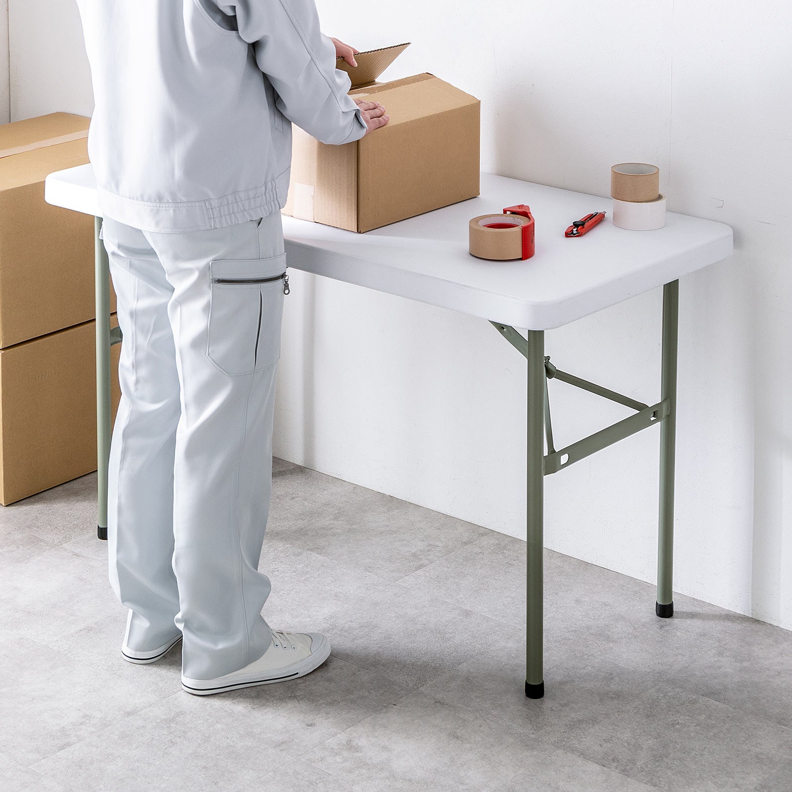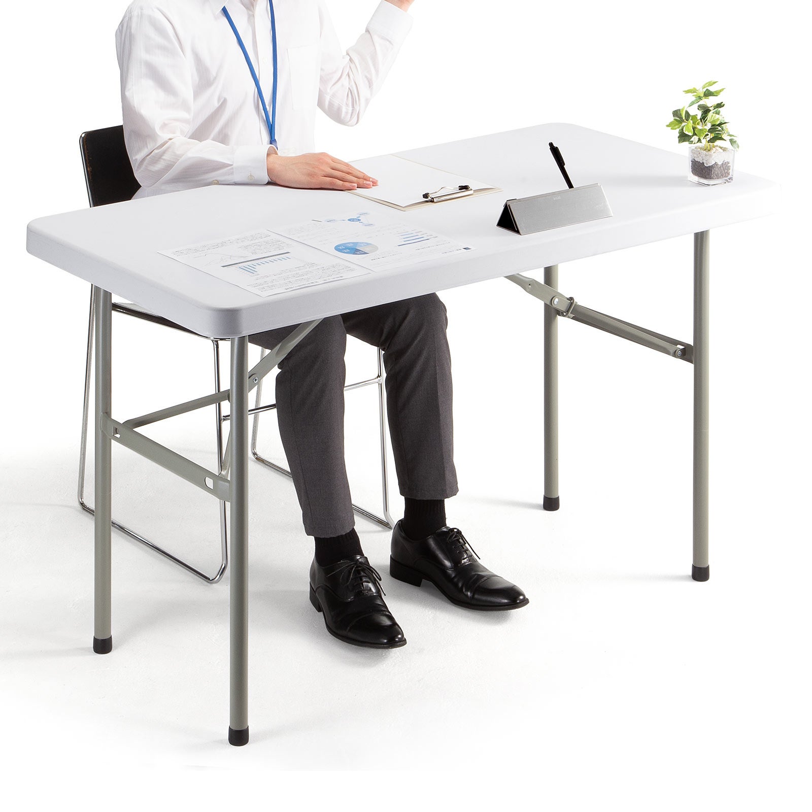 使用後は脚をたたんでスリムに収納。厚さ約5cmと非常にコンパクトなので、部屋の隅や車のトランクにもスッと収まります。限られたスペースを有効活用できる、現代のワークスタイルにぴったりの設計です。
