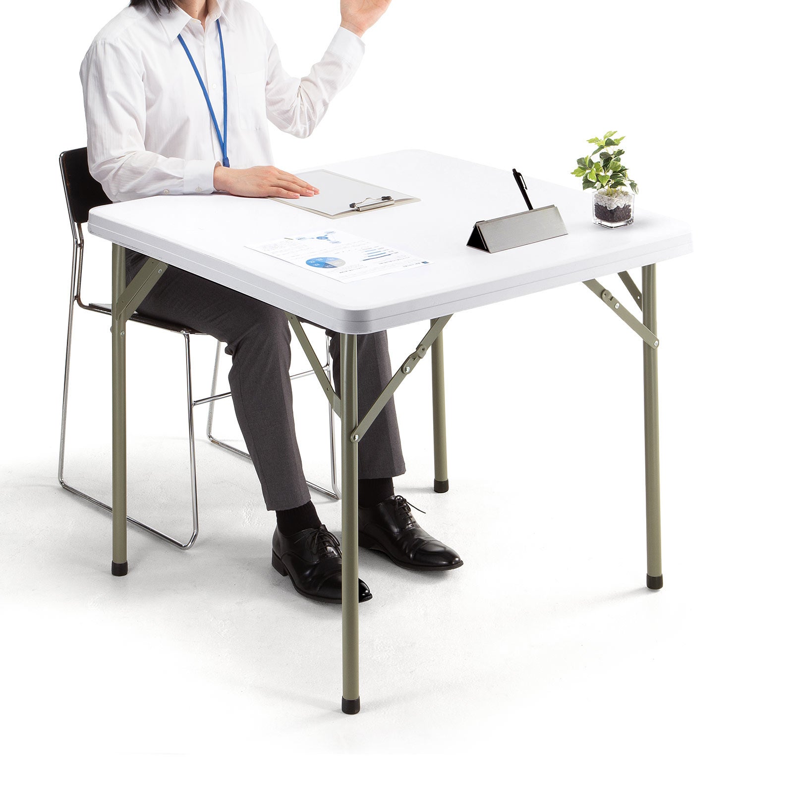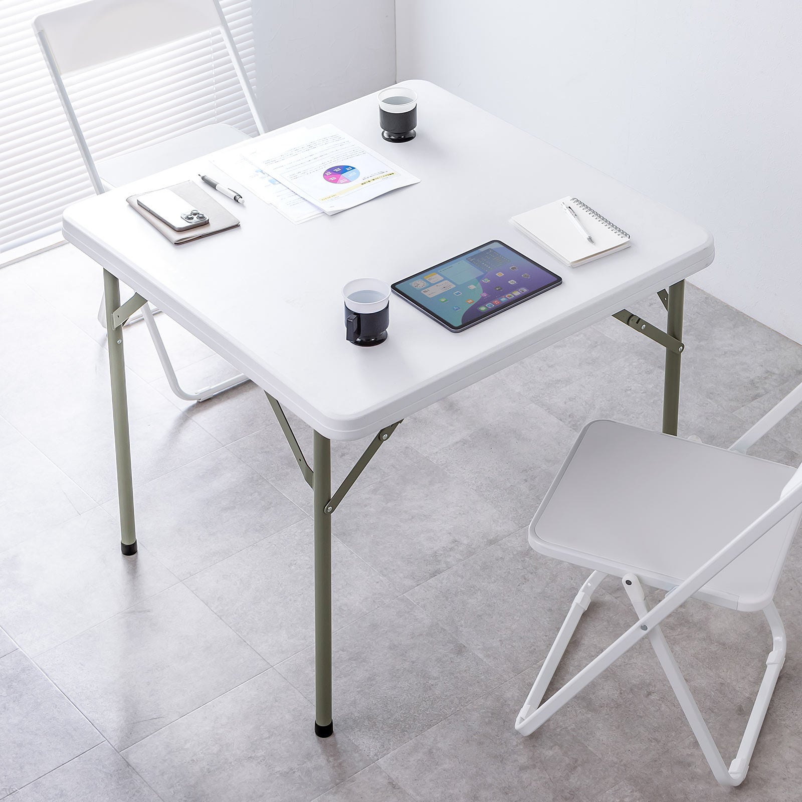折りたたみテーブル 折りたたみデスク ミーティングテーブル 樹脂天板 屋外 軽量 幅86cm×奥行86cm×高さ74cm