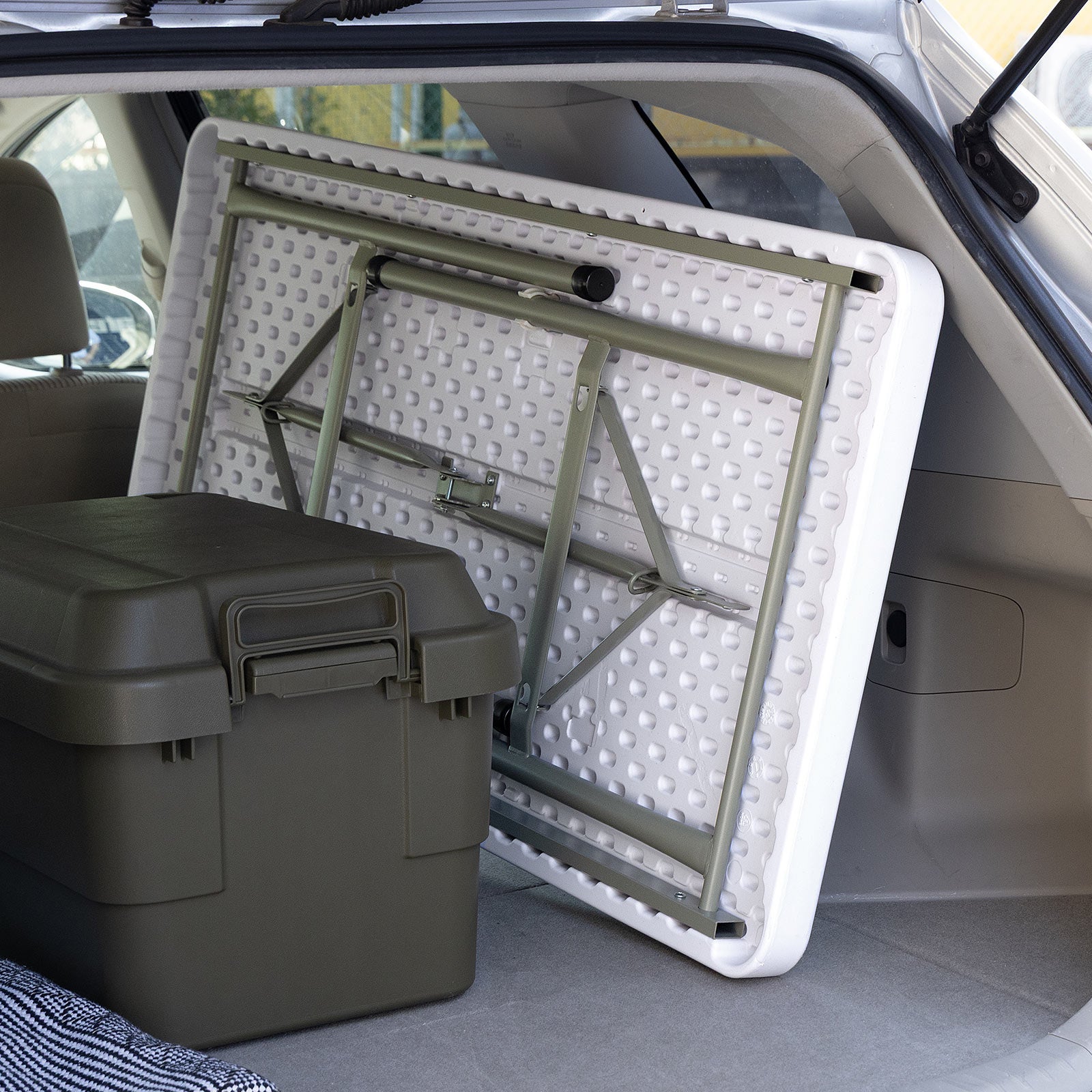 本体重量はわずか約9.4kg。女性でも持ち運びやすく、屋内外の移動や設置がストレスフリーです。ピクニック、キャンプ、臨時の展示会場でもすぐに活躍できる、機動性の高いテーブルです。