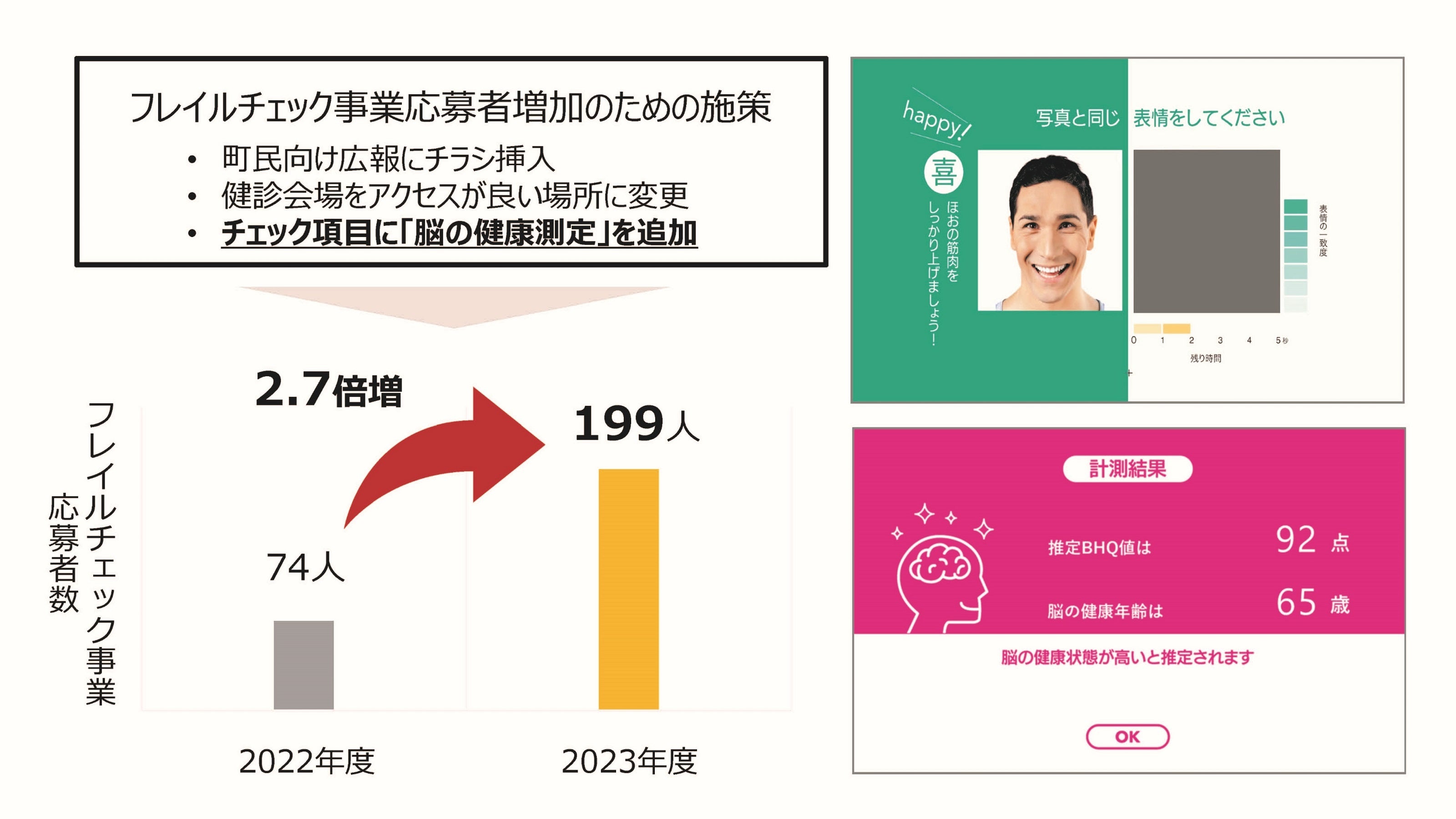 ■「脳の健康測定」導入後にフレイルチェック事業の応募者が74名から199名に増加