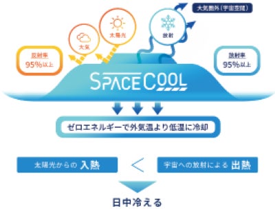 <放射冷却素材「SPACECOOLⓇ」について(出典:SPACECOOL㈱カタログより)>