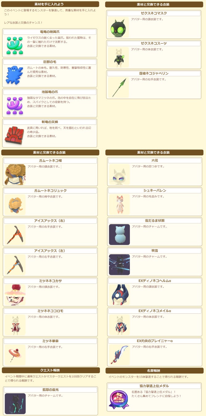 イベントに参加して「ゼクスネコスーツ」や「ガムートネコ帽」などの豪華な報酬を獲得しよう!