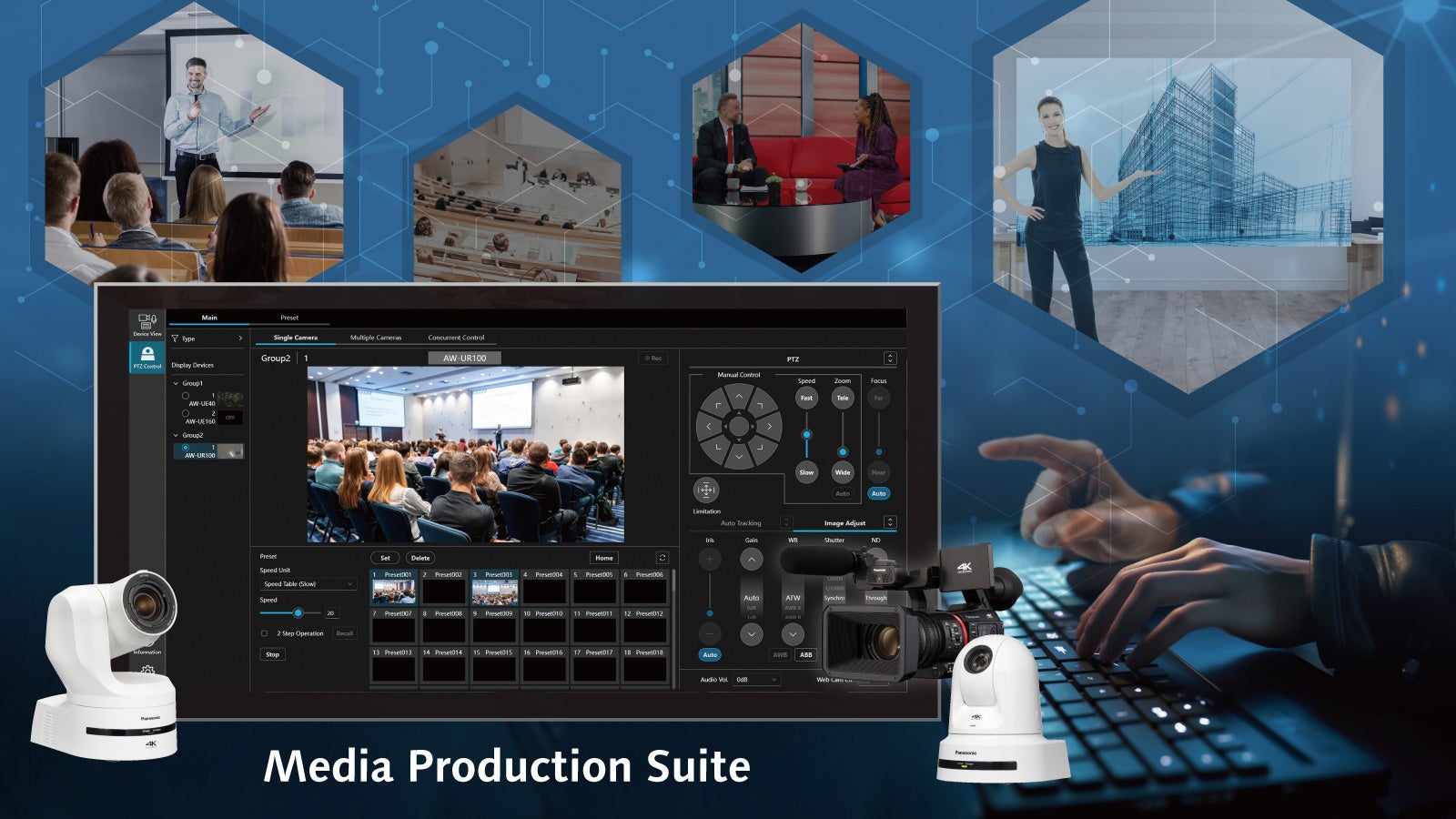 「Media Production Suite」は、これまでリモートカメラシステム向けに提供してきた「EasyIP Setup Tool Plus」「PTZ Control Center」等の各種PCソフトウェアを1つに集約し、今後多彩な有償プラグインを提供するソフトウェアプラットフォームです。多様な機能を同一のGUI画面で利用することができ、スマートオペレーションによる業務の効率化や映像演出の高度化を簡単操作で実現します。