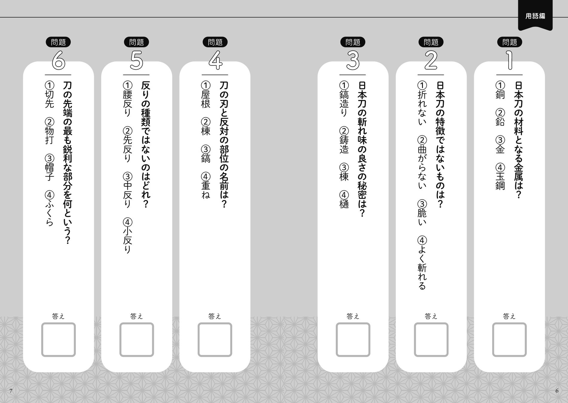・問題編 用語編より:問題例「日本刀の材料となる金属は?」ほか。