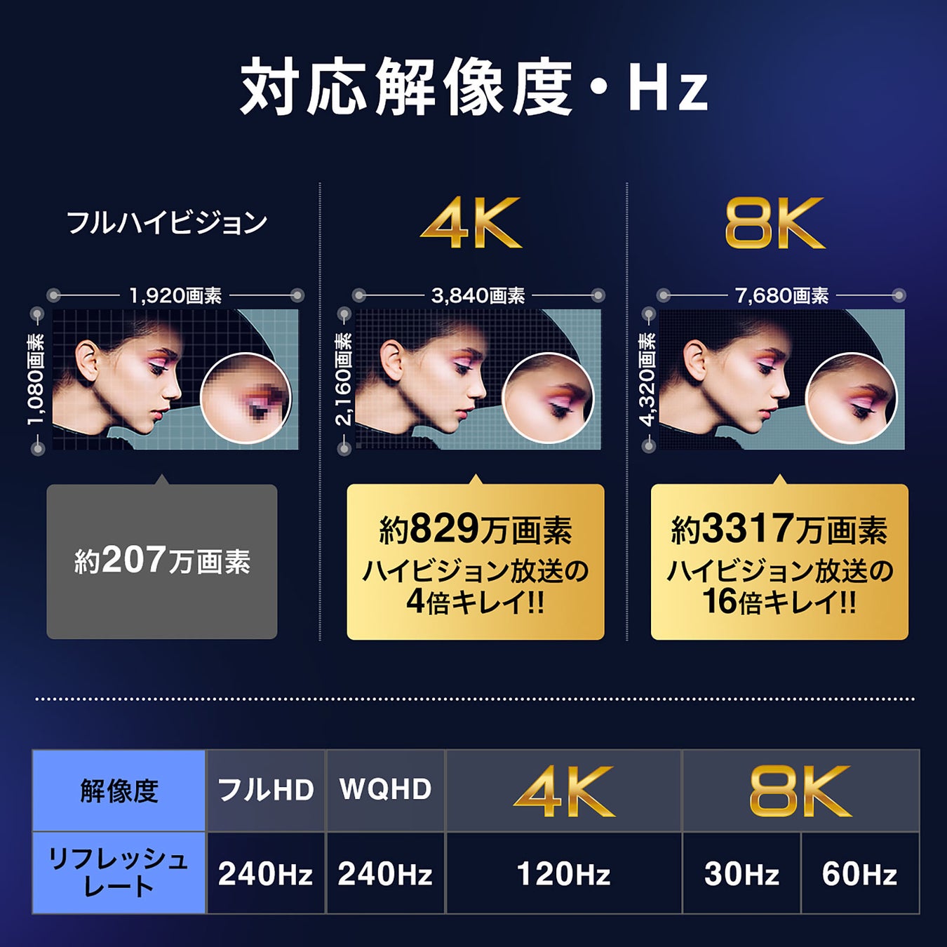 ・8K/60Hz・4K/120Hz対応:ウルトラハイスピード対応で高精細映像も安定伝送