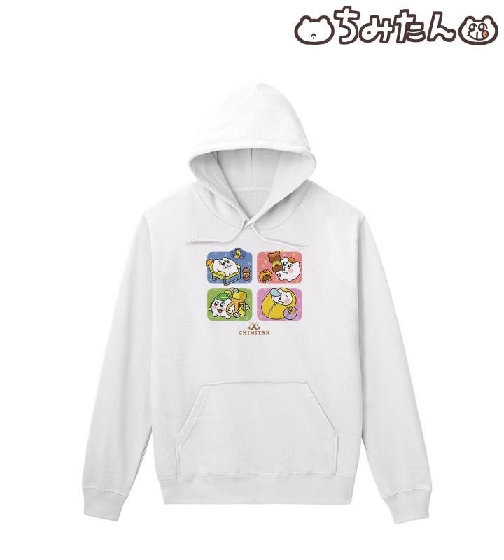 キャンプを楽しむちみたんの描き下ろしイラストをパーカーに仕上げました。