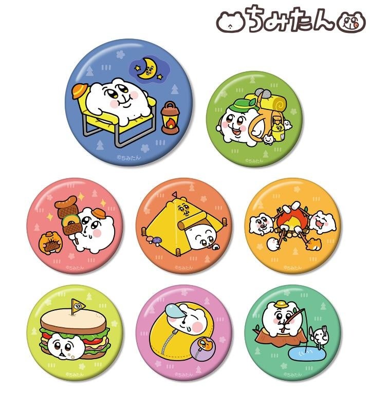 キャンプを楽しむちみたんの描き下ろしイラストを缶バッジに仕上げました。