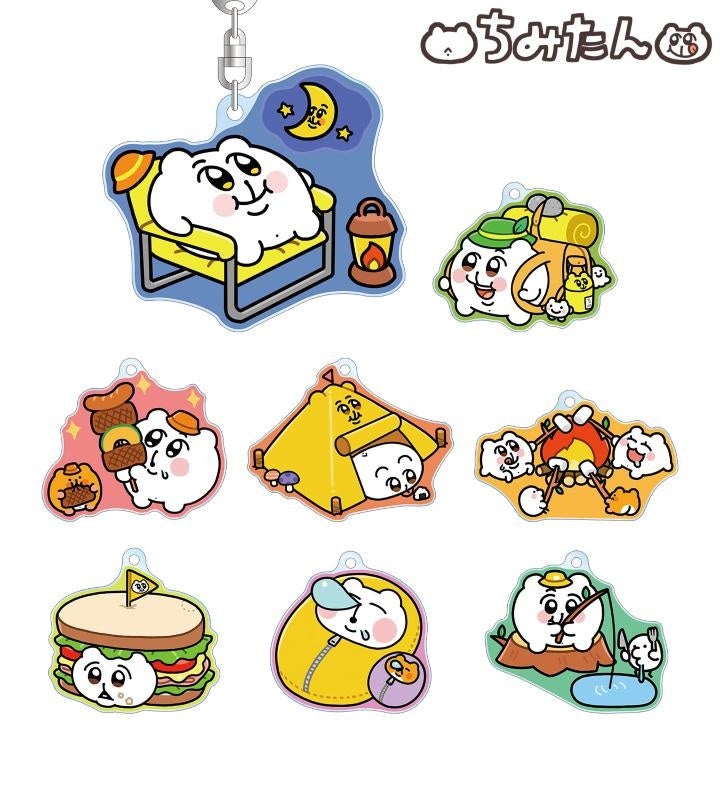 キャンプを楽しむちみたんの描き下ろしイラストをアクリルキーホルダーに仕上げました。