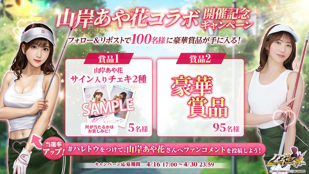 人気セクシー女優の山岸あや花さんとのコラボレーションを記念して、抽選で合計100名様にゲーム内に登場する衣装を着用したサイン入りチェキや、最大10,000円のAmazonギフトカード番号が当たるキャンペーンを実施致します。