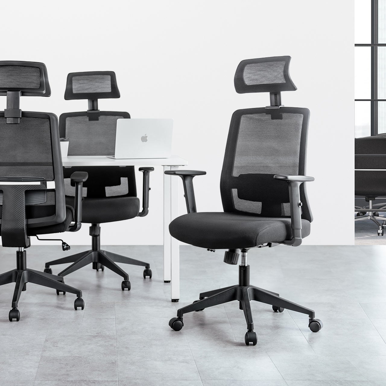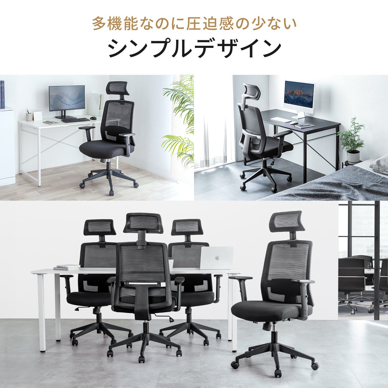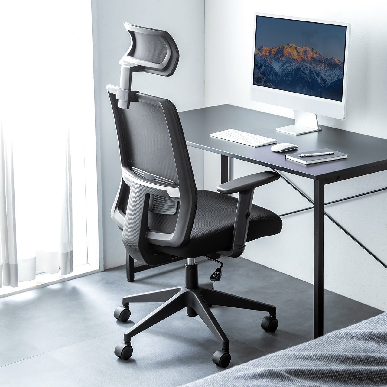 本製品は、しっかりと体を支えるミドルバック仕様で、長時間のデスクワークも快適に使用できます。