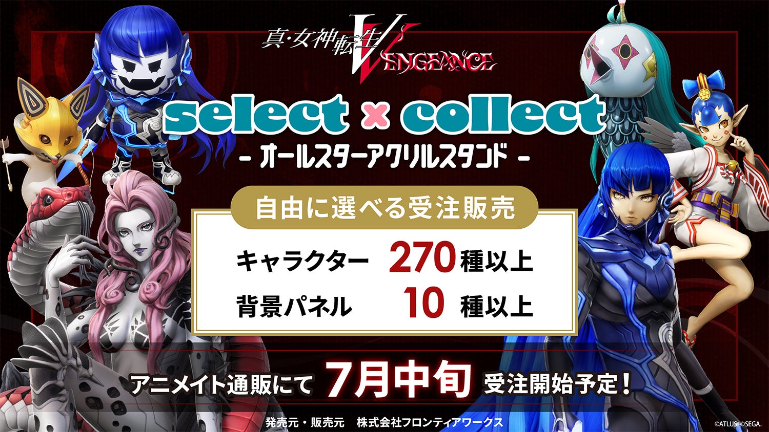 『真・女神転生Ⅴ Vengeance』の「select×collect₋オールスターアクリルスタンド‐」は2024年7月中旬頃アニメイト通販にて受注開始予定。