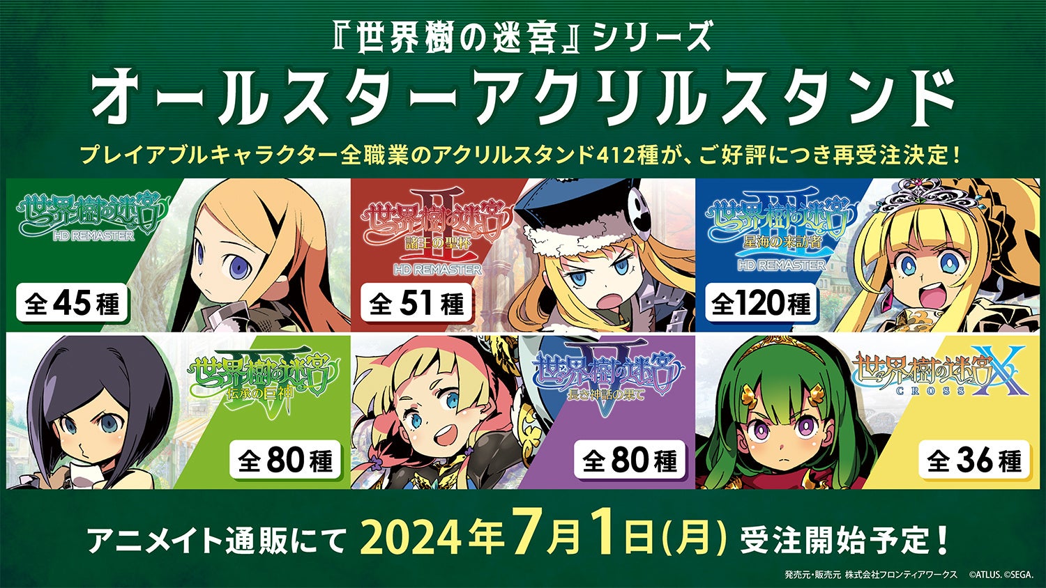 また、『世界樹の迷宮I~X』のアクリルスタンド全412種の再受注が決定!