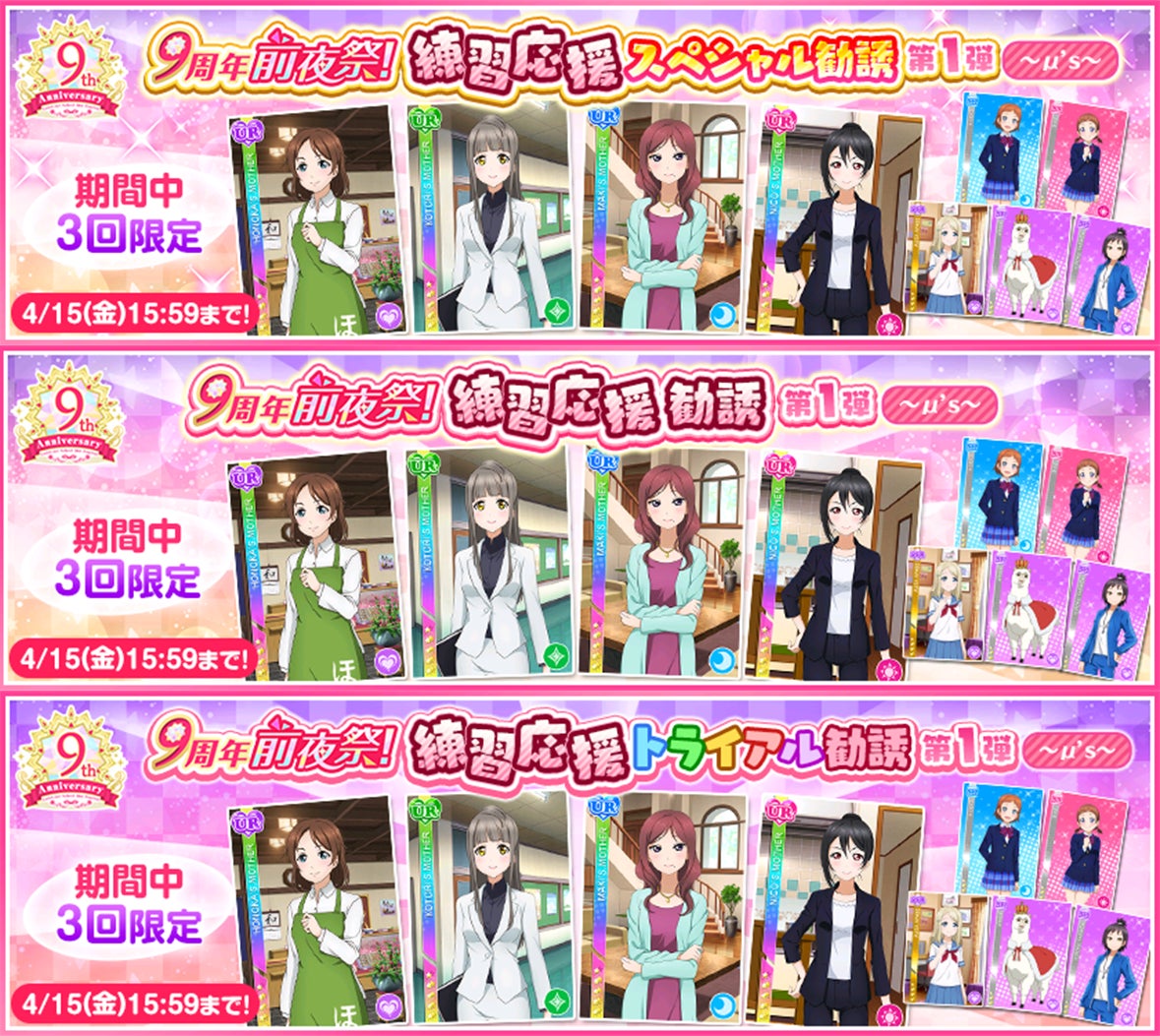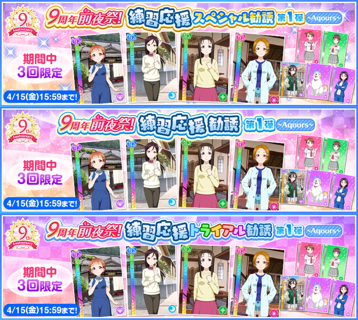 - 9周年前夜祭!SR以上確定ピックアップブースト勧誘〜Aqours〜