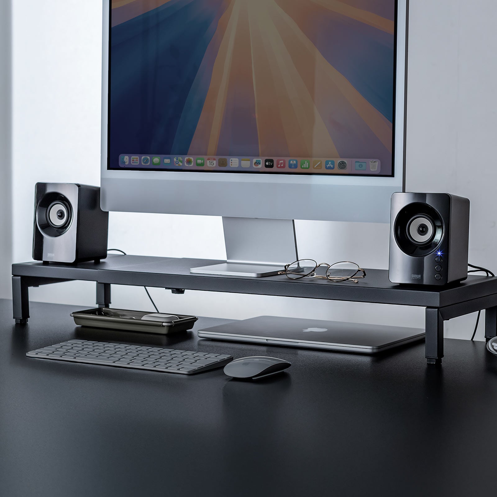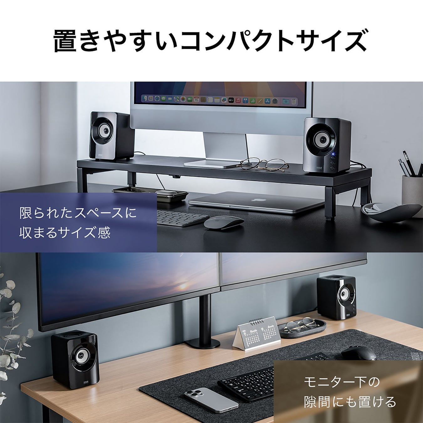 高さ10cm、横幅9cmとコンパクトな設計となっています。モニター台の上やモニターの下など、限られたスペースでも設置することが出来ます。