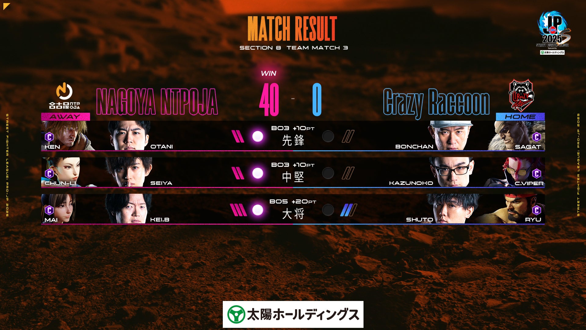 11月7日(金)に行われた「ストリートファイターリーグ: Pro-JP 2025 Division S 第8節」の試合速報をお知らせいたします。