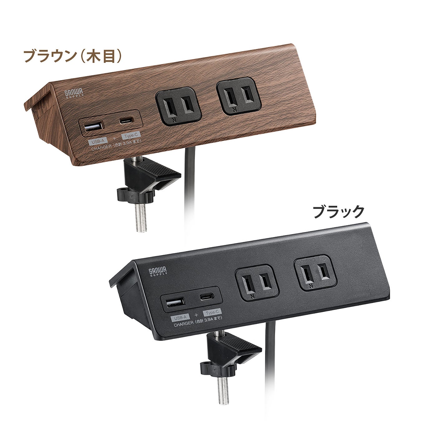 クランプでガッチリと机に固定できる!Type-C & USB Aポート搭載の電源タップの新色「ブラウン」を7月3日に発売