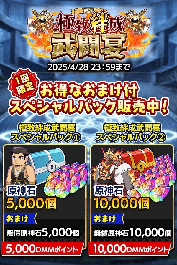 イベント期間中、原神石がおトクに購入できる「第7回極致絆成武闘宴スペシャルパック」が2種登場!