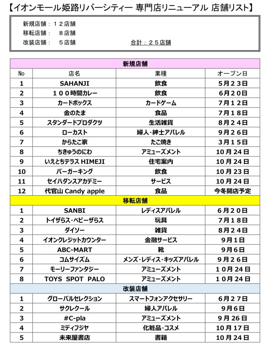 イオンモール姫路リバーシティー(以下、当モール )は、今春から今秋にかけて25店舗を刷新し、