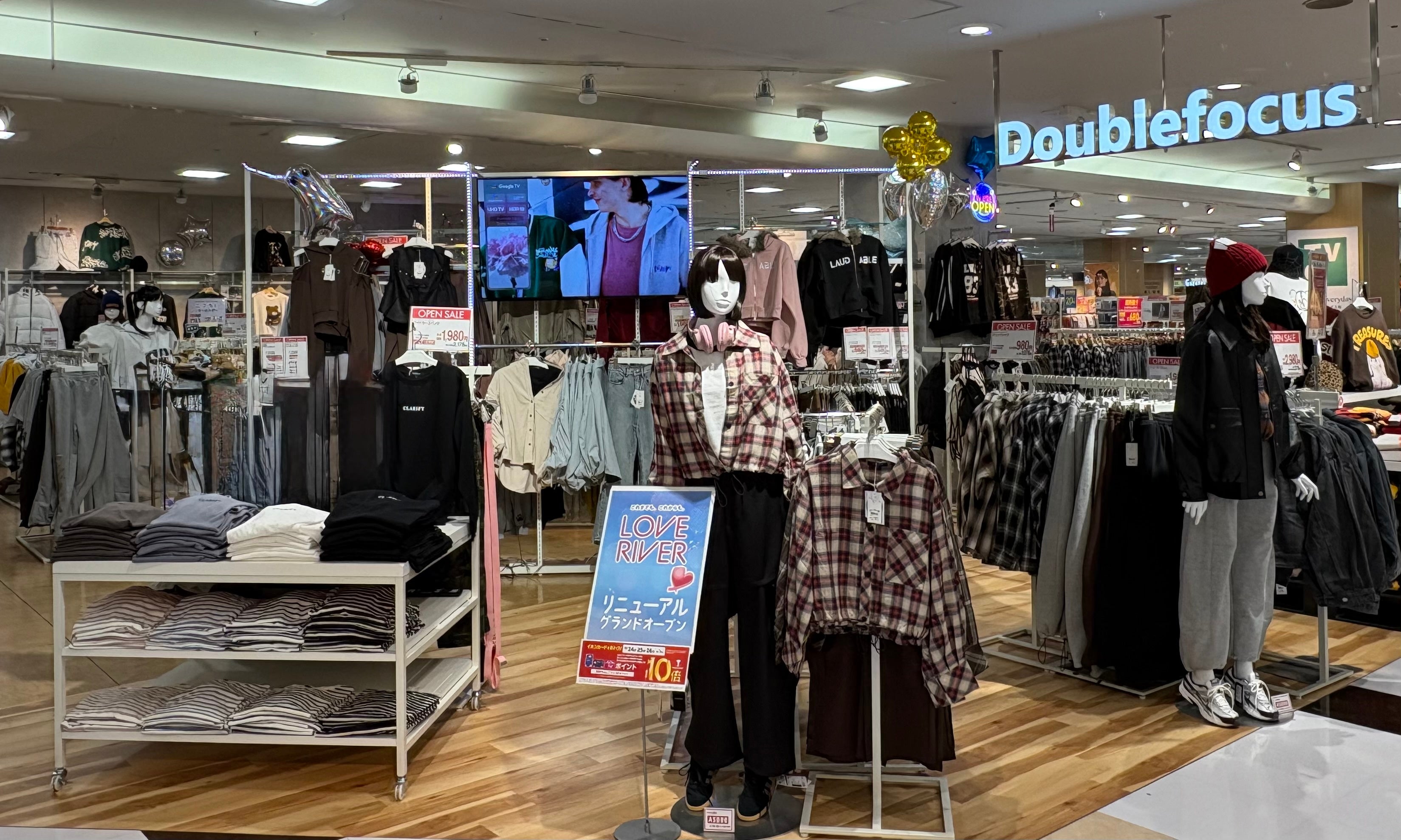 ス・メンズアパレルを豊富に取り揃え、トレンドからベーシックまで幅広いスタイルを提案します。ヤングカジュアルウェアの専門店「Doublefocus(ダブルフォーカス)」では、ティーンが今してみたい!と思うファッションを、自由に楽しめるラインアップを揃え、これまでのメンズ中心からレディスアイテムも加わり、より幅広いスタイルを提案します。