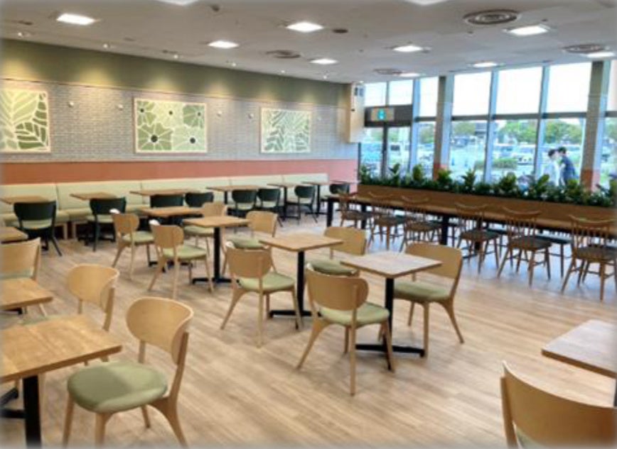 ③フードコートは広々とした座席レイアウトに刷新し、離乳食席やベビーカー置き場、小上がり
