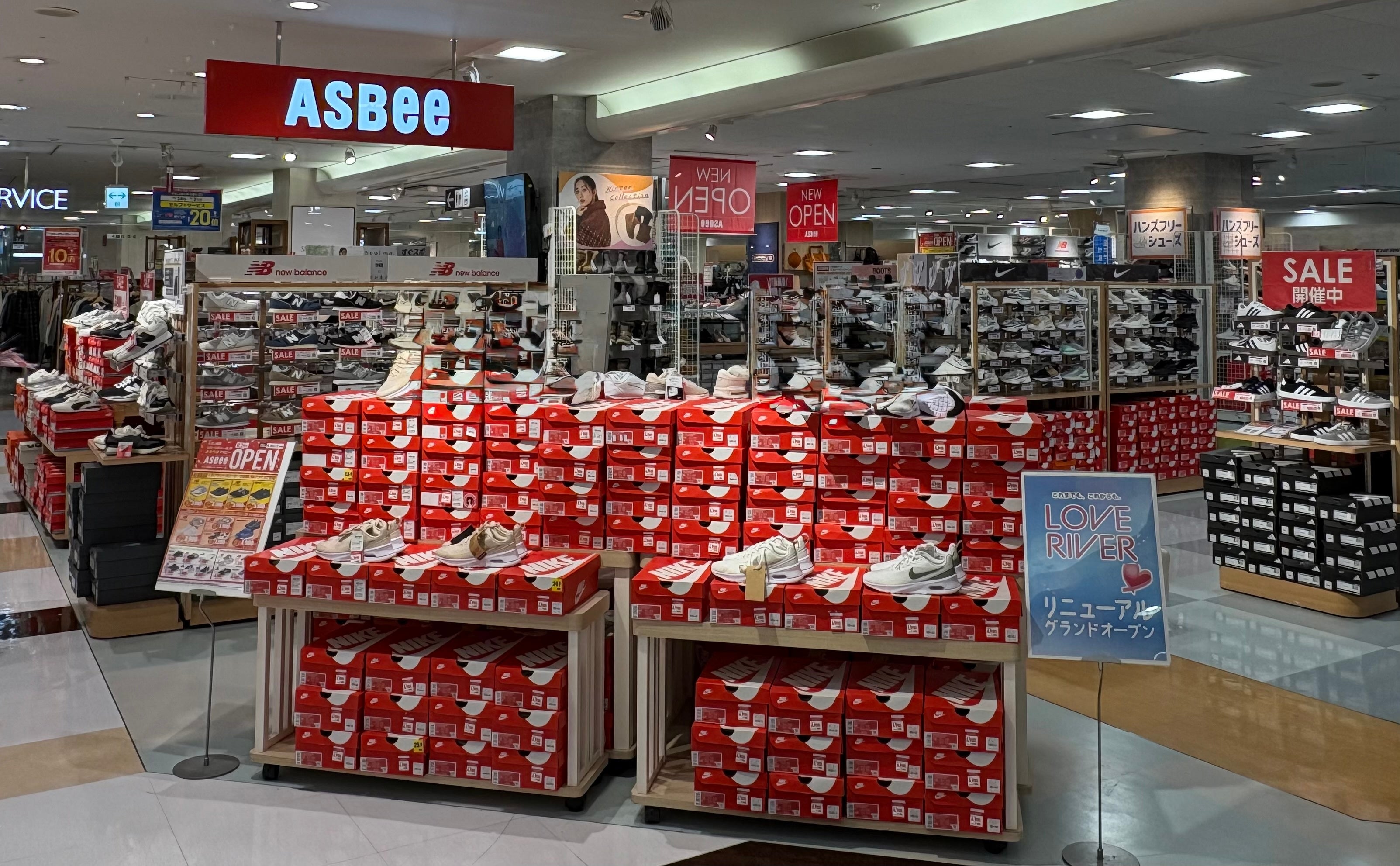 ④ ファッションフロアは、 ヤングカジュアル専門店 《 ダブルフォーカス 》 にレディスアイテムが加わりさらに充実 。シューズは 《ASBEE》 に刷新