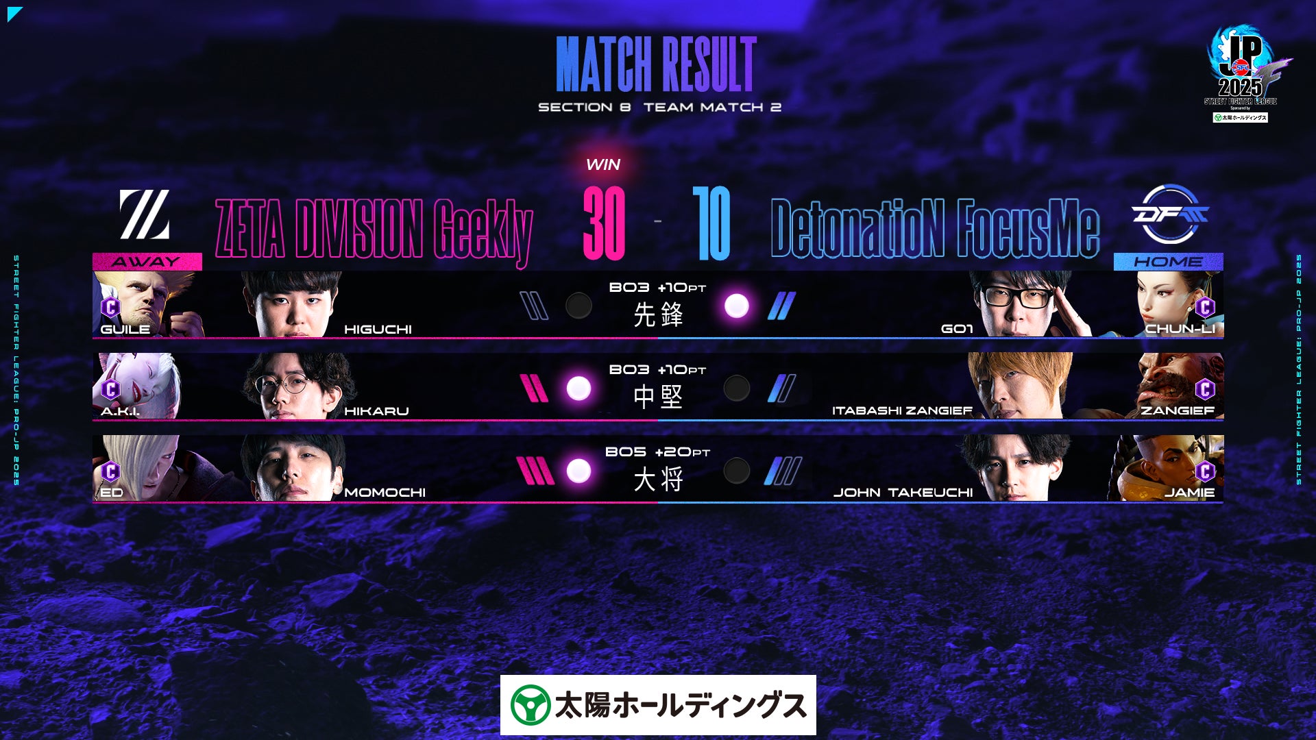 11月11日(火)に行われた「ストリートファイターリーグ: Pro-JP 2025 Division F 第8節」の試合速報をお知らせいたします。