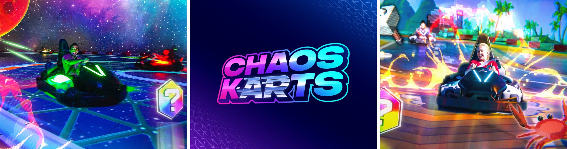 Chaos Kartsは、The Ents Inc.によって運営されています。同アトラクションは、最先端のテクノロジーを使用して、ゴーカートとビデオゲームの世界を組み合わせ、リアルに再現することで、プレイヤーをその世界に没入させる、新しい次世代型エンターテインメント施設です。アトラクションはカートの安全な操作を確保するために、身長制限が適用され、11歳以上、身長153 cm以上の方のみご利用いただけます。