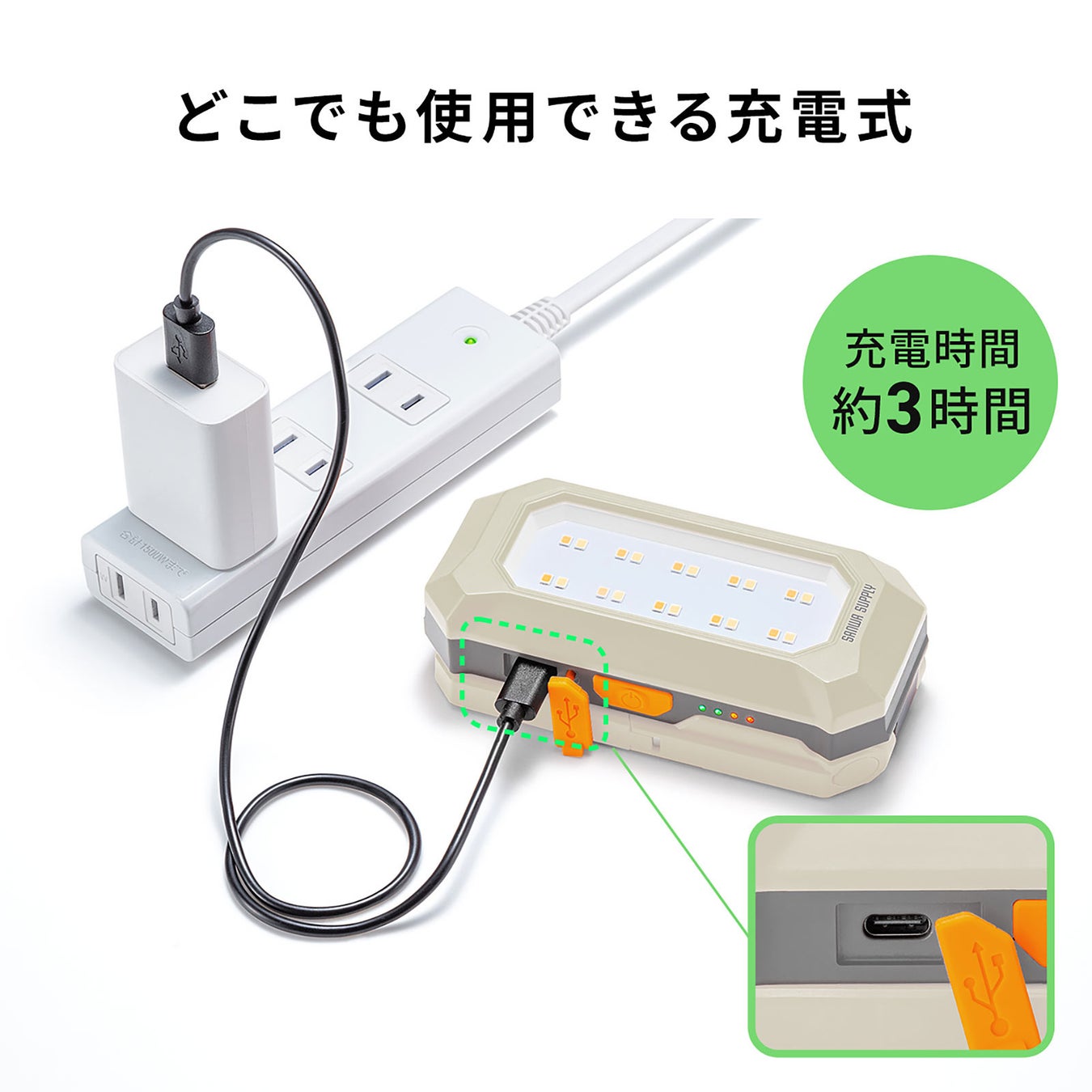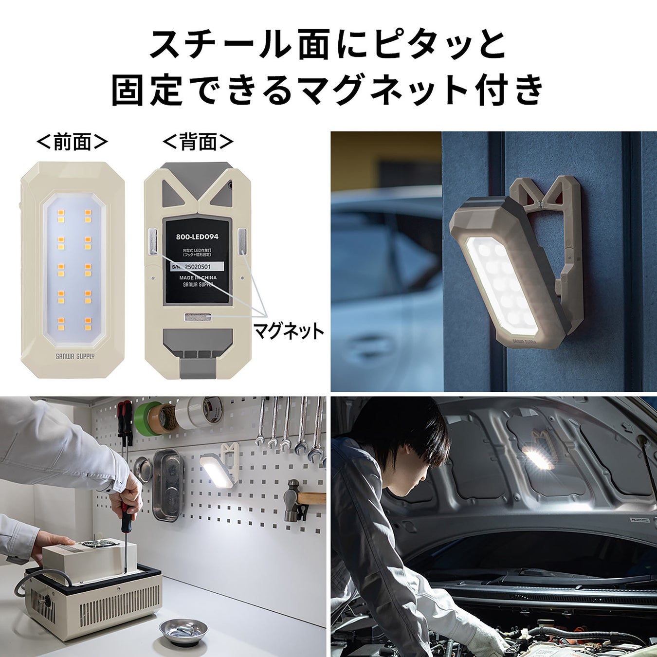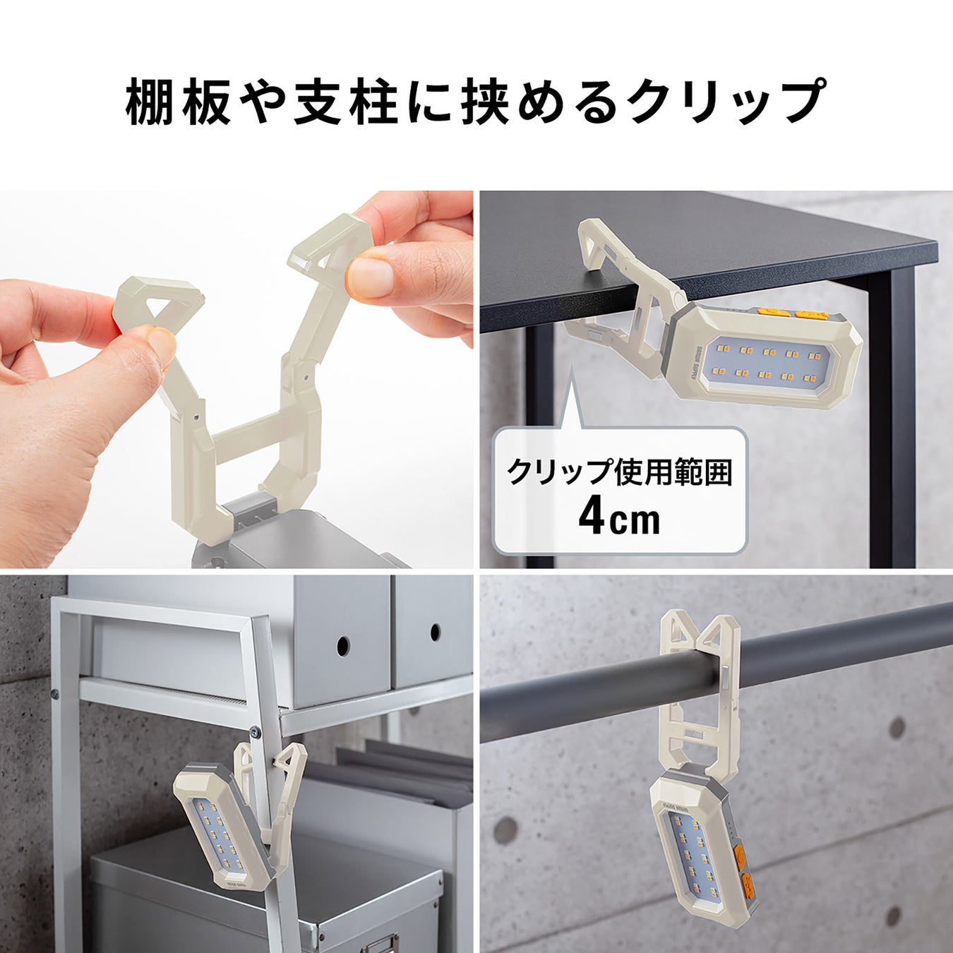 作業灯 LED 充電式 防水 小型 クリップ マグネット付 500ルーメン スタンド 手持ちライト ベージュ
